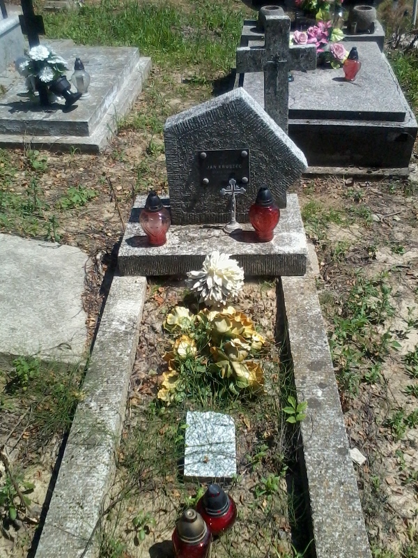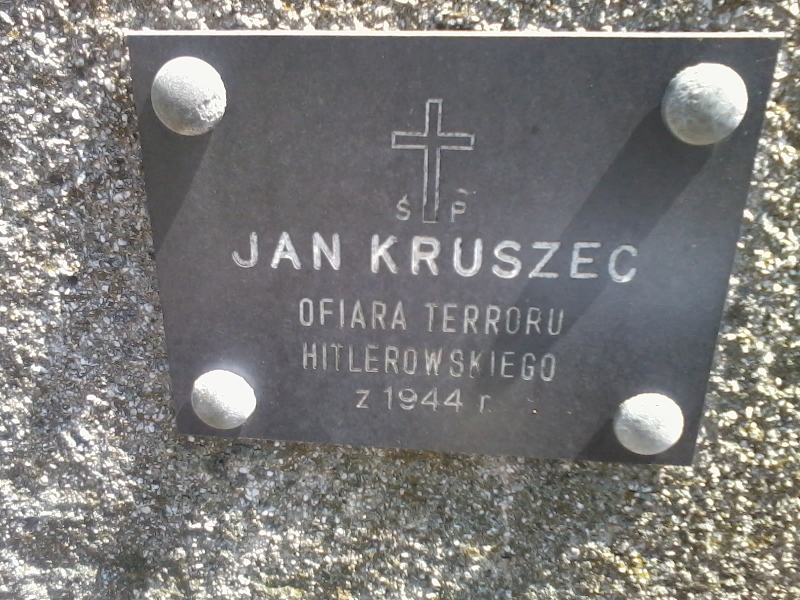 Mogiła ziemna, w betonowym obramowaniu, u wezgłowia stela w kształcie niesymetrycznego pięcioboku z tablicą z napisem: „چP/ JAN KRUSZEC/ OFIARA TERRORU/ HITLEROWSKIEGO/ Z 1944 r.” Za stelą umieszczony jest krzyż łaciński.