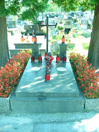 Mogiła, wykonana z płyty z czarnego granitu, położona jest w środkowej części cmentarza parafialnego. U wezgłowia nagrobka znajdują się dwa postumenty pod znicze. Pomiędzy postumentami stoi metalowy krzyż. Na płycie nagrobka wyryto wizerunek krzyża oraz informacje o pochowanych.