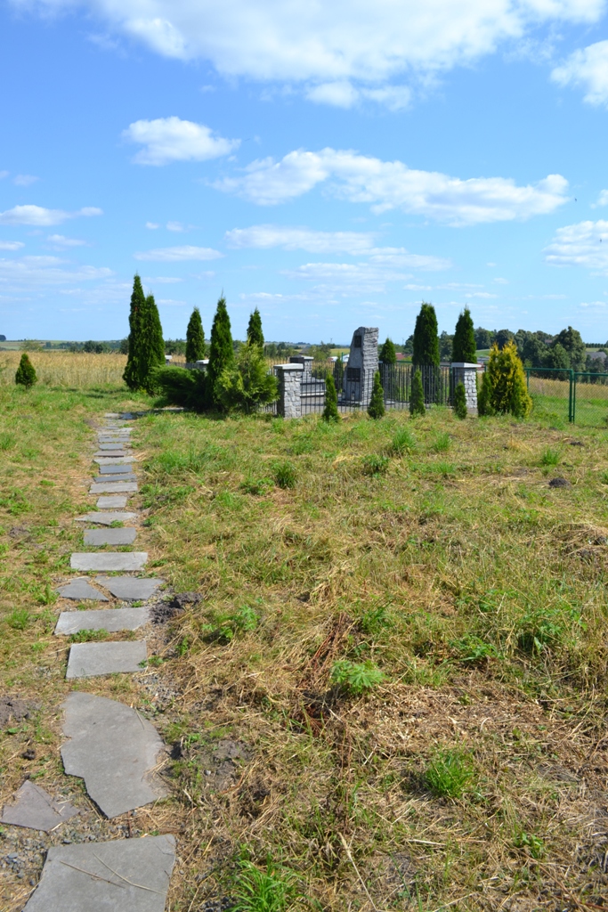 Drugi z pomników ma formę kamiennego nagrobka, nakrytego trzema płytami. U jego wezgłowia znajduje się prostokątna stela z napisem: „TU SPOCZYWA/ OKOŁO 35 OFIAR ŻYDOWSKICH/ KTÓRZY ZOSTALI ZAMORDOWANI/ PRZEZ ZBIRÓW HITLEROWSKICH/ DNIA 23.XI.1942 r. M.INNYMI:/ RACHELA STROSBERG/ CÓRKI LOLA i DORA/ Z BRZESKA NOWEGO”. W dolnej części tablicy znajduje się napis w języku hebrajskim. Otoczenie mogiły wyłożone jest płytami chodnikowymi.