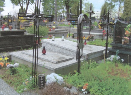 Nagrobek wykonany z dwóch płyt lastrykowych osadzonych na betonowym fundamencie. Na mniejszej płycie umieszczono niewielką tablicę pamiątkową z informacją o pochowanych.