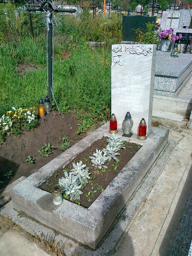 Pochowano tu Edwarda Wójcika z Grzegorzowic, rozstrzelanego przez niemiecki oddział żandarmerii ze Skały w miejscowości Celiny w lipcu 1943 r.