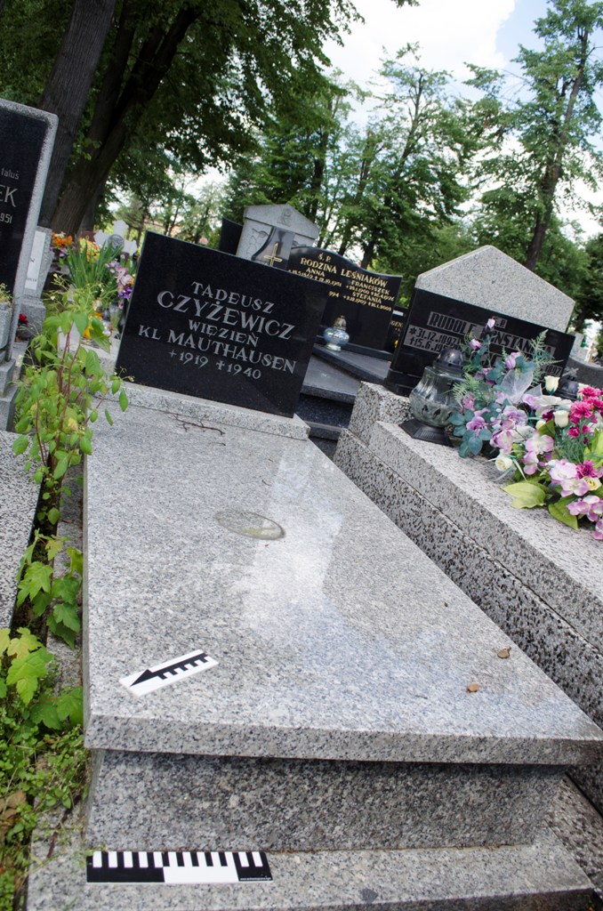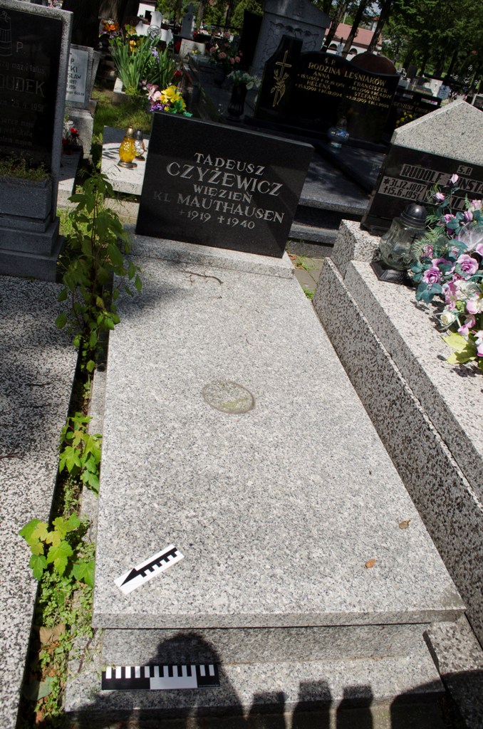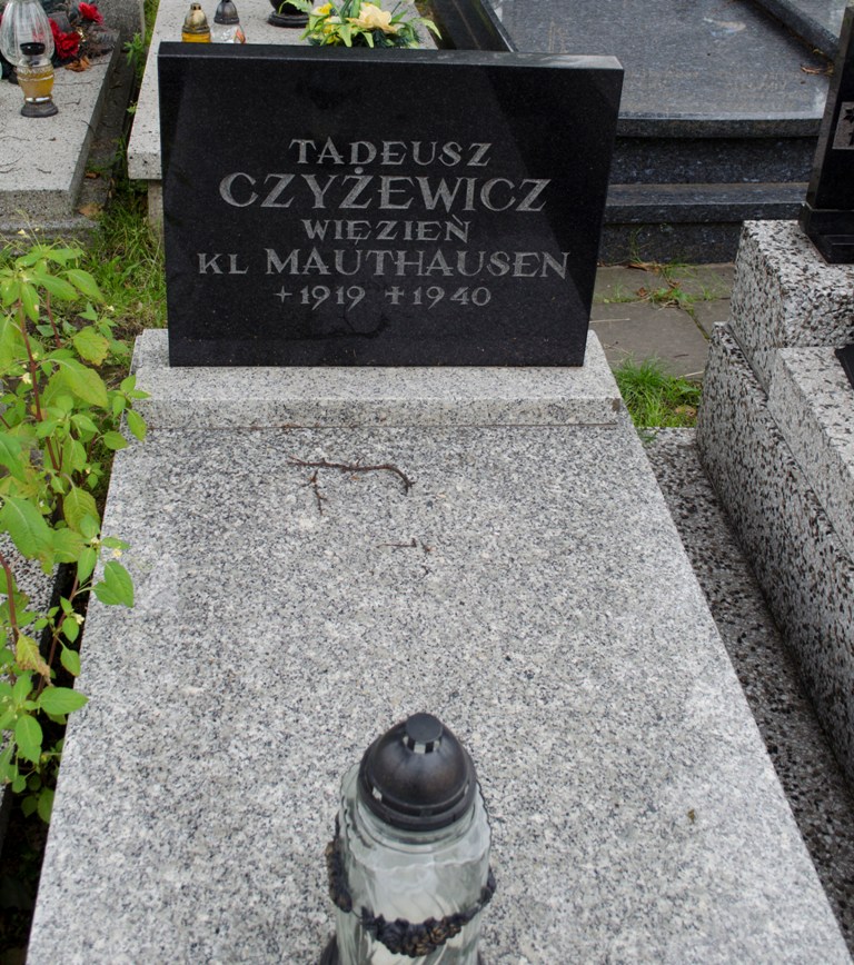 Mogiła obramowana i nakryta granitową płytą, u wezgłowia stela z ciemnego kamienia z napisem: „TADEUSZ/ CZYŻEWICZ/ WIĘZIEŃ/ KL MAUTHAUSEN/ +1919 †1940”.