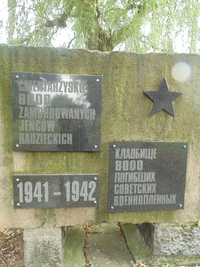 – „CMENTARZYSKO/ 8000/ ZAMORDOWANYCH/ JEŃCÓW/ RADZIECKICH”,