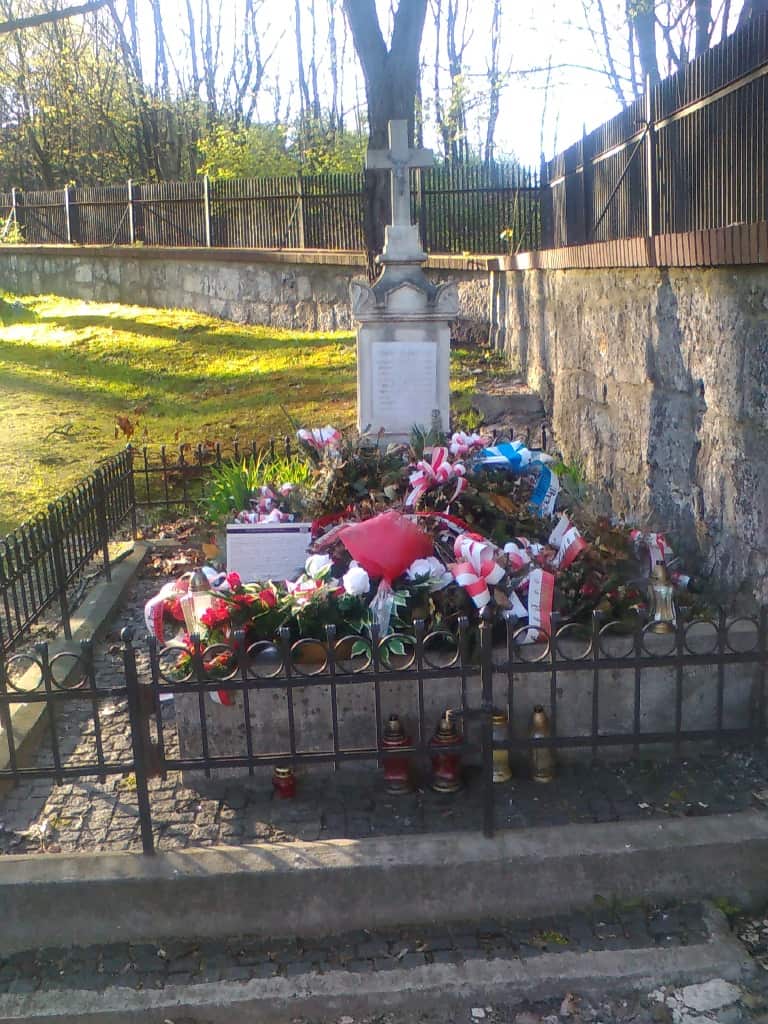 Pierwszy nagrobek na mogile powstał w 1848 r. ze składek społecznych. W 1936 r. staraniem podgórskiego Związku Legionistów wystawiono nowy pomnik nagrobny, który przetrwał do dzisiaj i znajduje się na prawo od wejścia na cmentarz. Jest ziemna mogiła w obramowaniu, otoczona kutym, metalowym płotem. Na mogile znajduje się kamienny pomnik w formie zwieńczonego krzyżem postumentu z piaskowca. We frontową ścianę postumentu wmurowana jest tablica z napisem: "EDWARD DEMBOWSKI/ DZIAŁACZ NIEPODLEGŁOŚCIOWY/ SEKRETARZ RZĄDU NARODOWEGO/ PODCZAS POWSTANIA KRAKOWSKIE/ GO ZGINĄŁ ZA SPRAWĘ OJCZYSTĄ/ W DNIU 27 LUTEGO 1846/ ZABITY NA RYNKU W PODGÓRZU/ PRZEZ AUSTRIAKÓW WRAZ/ Z DWUDZIESTU OŚMIU POWSTAŃCAMI/ SPOCZYWAJĄCYMI W TEJ MOGILE".