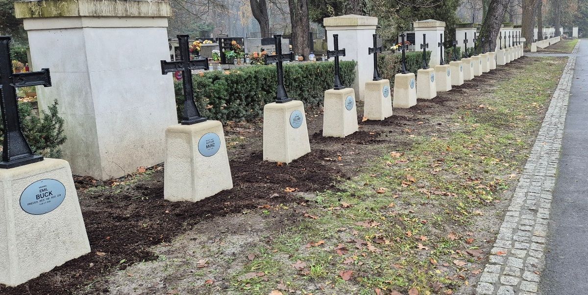 - Leutnant Peter von Petrovits in Form einer Einfassung mit einem steinernen Obelisken auf dem Grabstein, - Vaclav Petr in Form einer steinernen Giebelstele mit einem Relief des heiligen Wenzel zu Pferd und einer Inschrift in tschechischer Sprache, - des Schützen Josef Kunstman in Form eines Steinsockels mit einer Gedenktafel.