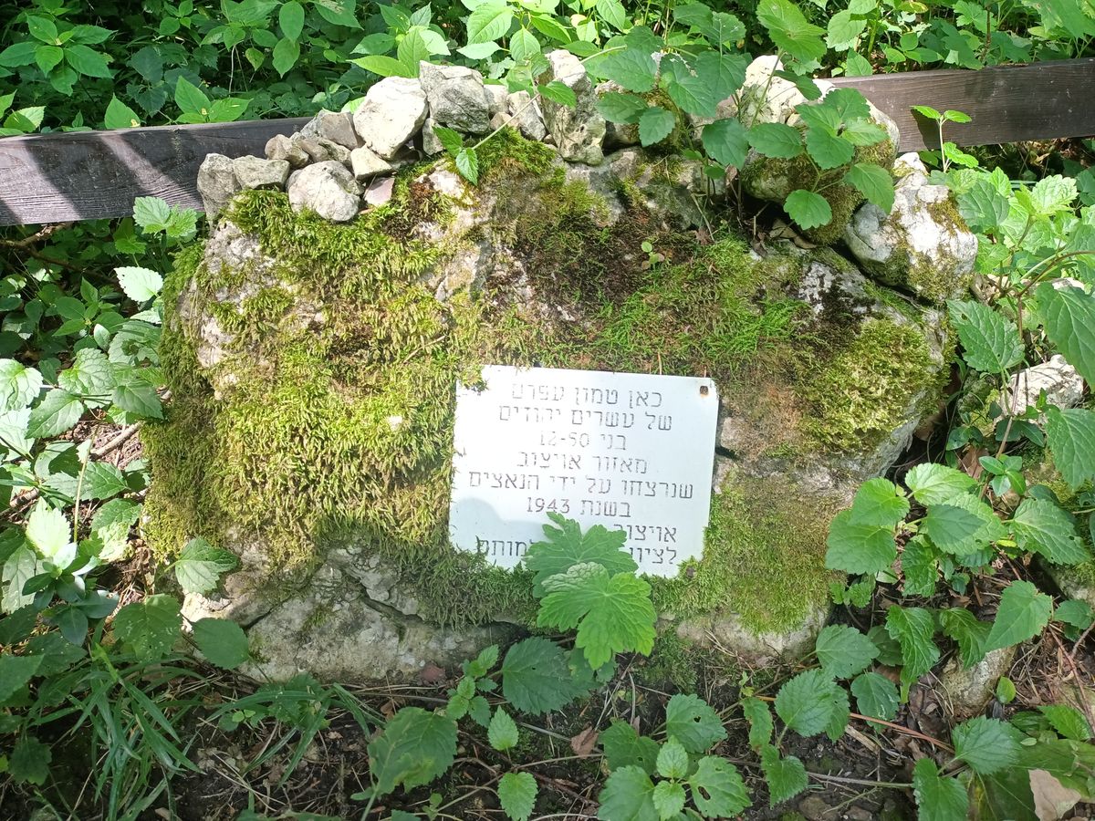 Mogiła ziemna, otoczona drewnianymi żerdziami wspartymi na słupkach. Na mogile znajdują się dwa kamienie z tablicami w języku hebrajskim i polskim: „TU SPOCZYWA OK. 20 ŻYDÓW Z OKOLIC OJCOWA/ W WIEKU OD 12 DO 50 LAT ROZSTRZELANYCH/ PRZEZ NIEMCÓW W 1943 ROKU/ OJCÓW 1993, W 50-TĄ ROCZNICĘ ICH ŚMIERCI”.