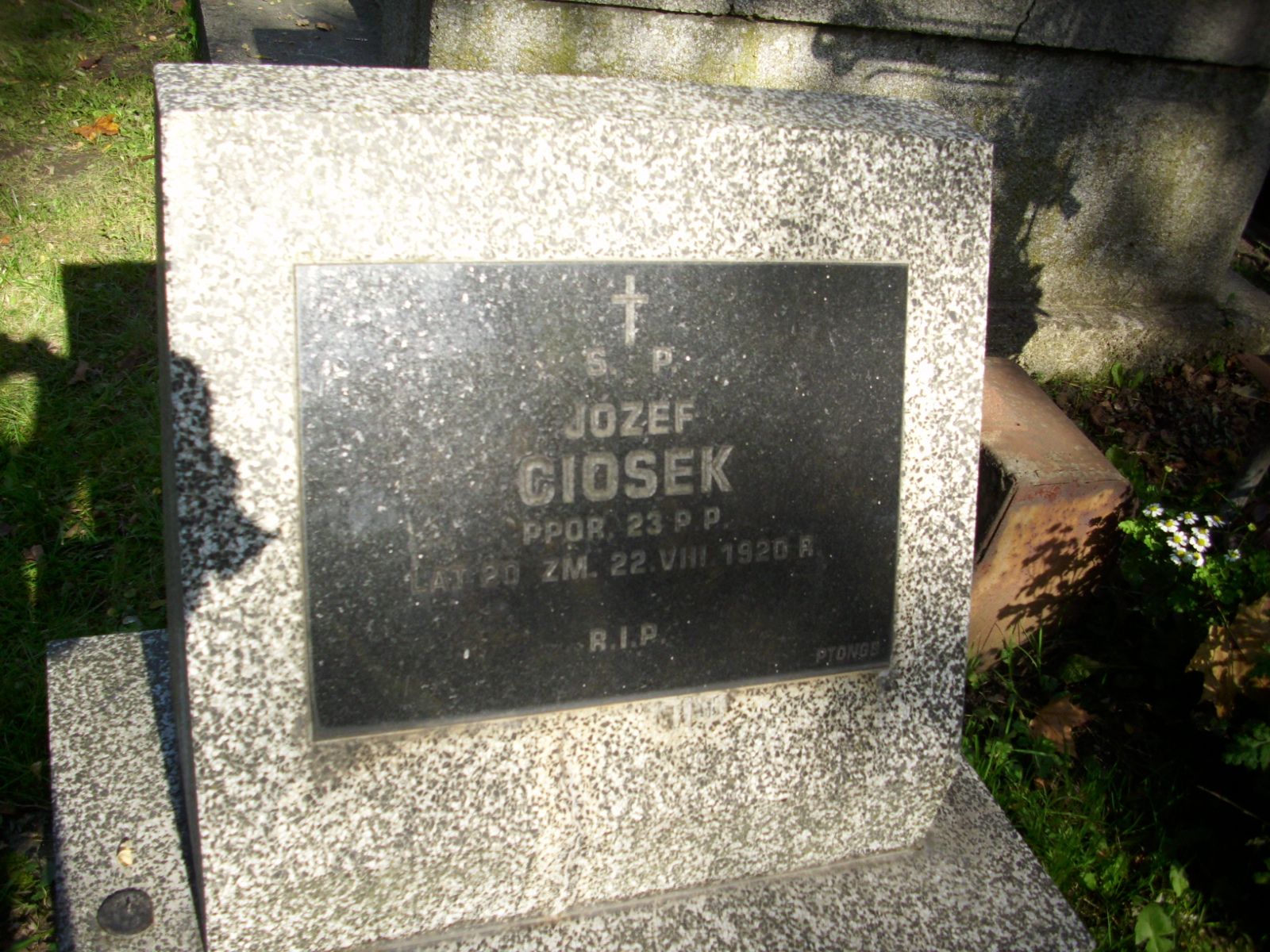 MOGIŁA JÓZEFA CIOSKA PODPORUCZNIKA WOJSKA POLSKIEGO Z SIERPNIA 1920 R. (PAS 33A-2-67) NA CMENTARZU RAKOWICKIM W KRAKOWIE