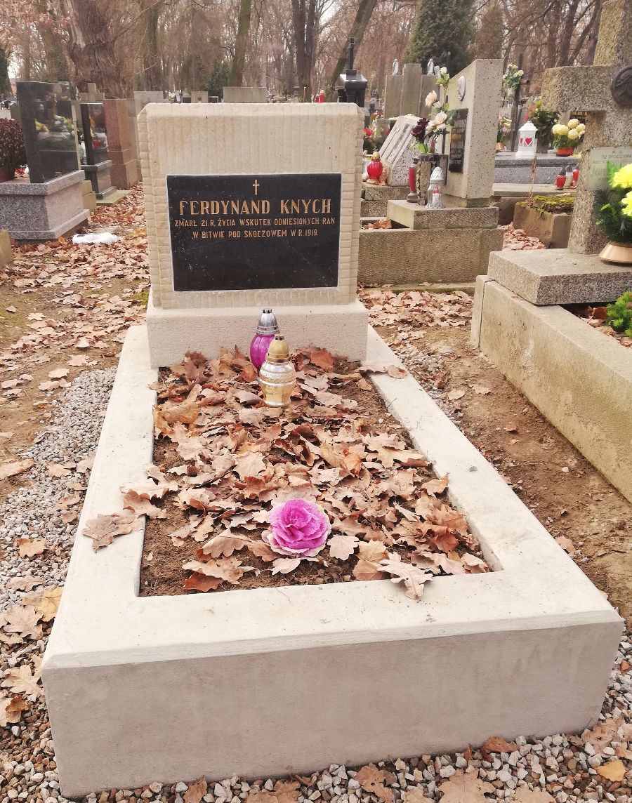 MOGIŁA FERDYNANDA KNYCHA, PLUTONOWEGO WOJSKA POLSKIEGO Z 1919 R. NA CMENTARZU RAKOWICKIM W KRAKOWIE (KW. XXVIB, RZĄD PN., MIEJSCE 21)