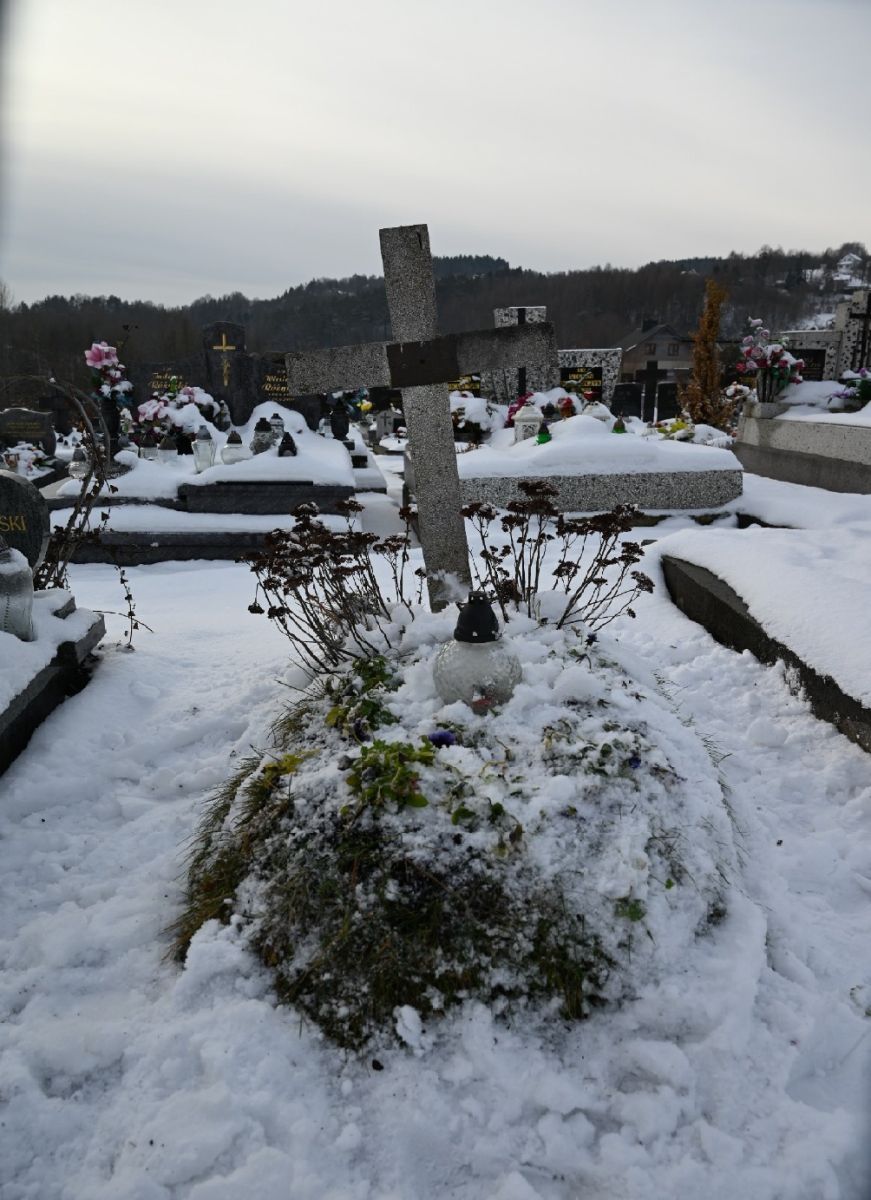 Mogiła ziemna, u wezgłowia lastrykowy krzyż z tabliczką na skrzyżowaniu ramion z napisem: „S.P./ Pacek Franciszek/ Przeżył lat 35/ Zmarł śmiercią/ tragiczną w dniu 31 XII 1946”.