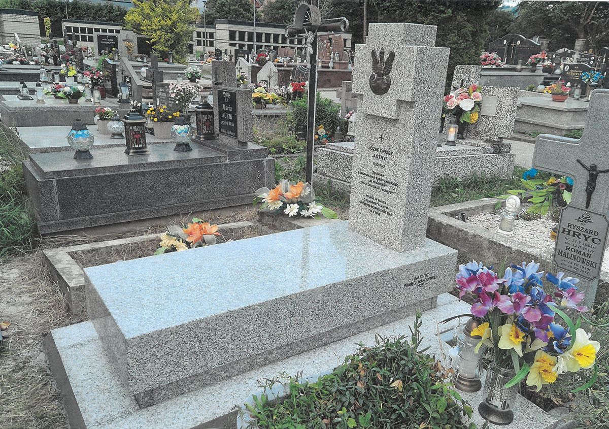 Na mogile nagrobek z granitu strzegomskiego, z attyką u wezgłowia z wyprofilowanym w górnej części równoramiennym krzyżem, na którym umieszczony odlew orła wojskowego.