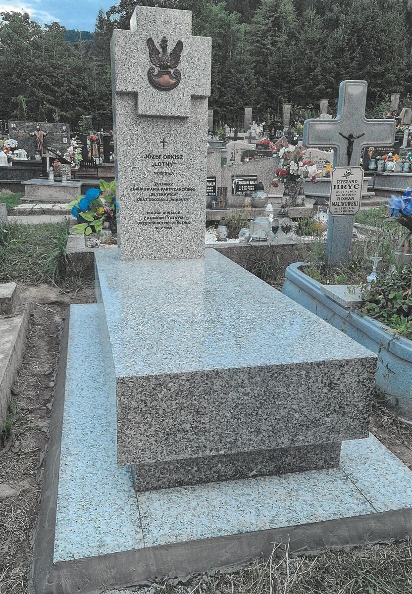 Poniżej krzyża znajduje się inskrypcja: „JÓZEF ORKISZ/ „LOTNY”/ 1923-1948/ ŻOŁNIERZ/ ZGRUPOWANIA PARTYZANCKIEGO/ „BŁYSKAWICA”/ ORAZ ODDZIAŁU „WIARUSY”/ POLEGŁ W WALCE/ Z KOMUNISTYCZNYM/ URZĘDEM BEZPIECZEŃSTWA/ 30 V 1948”.