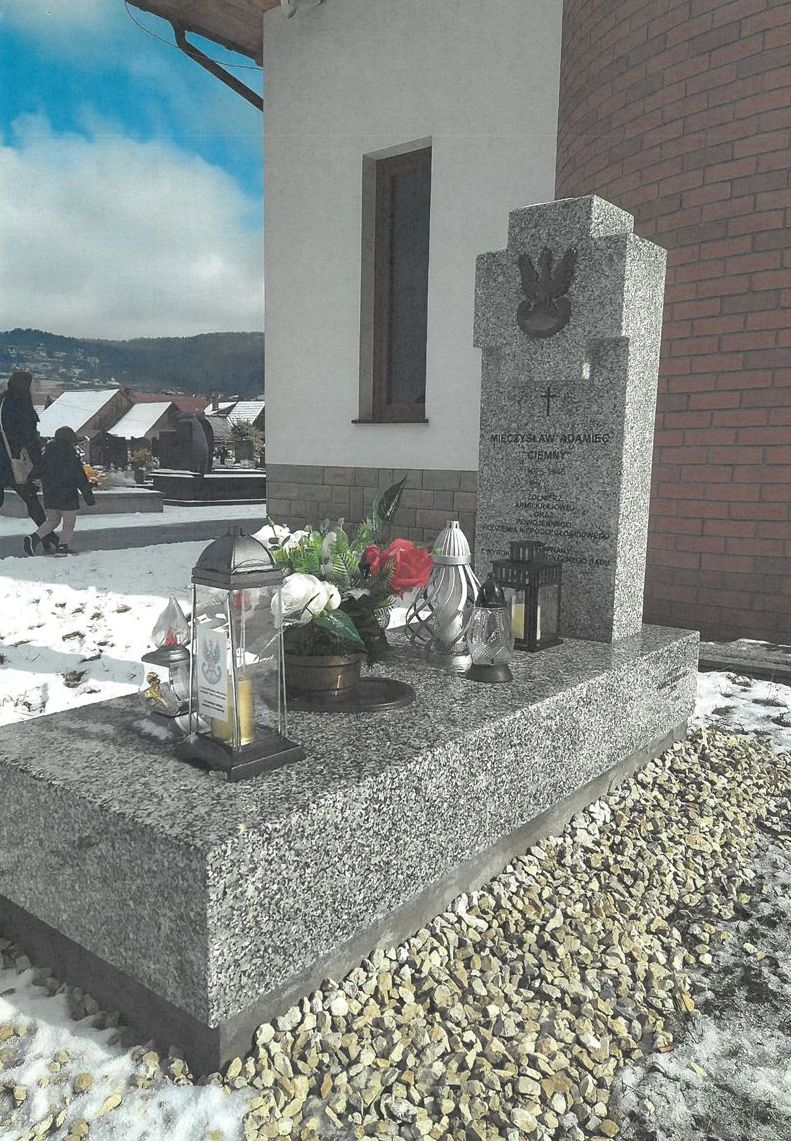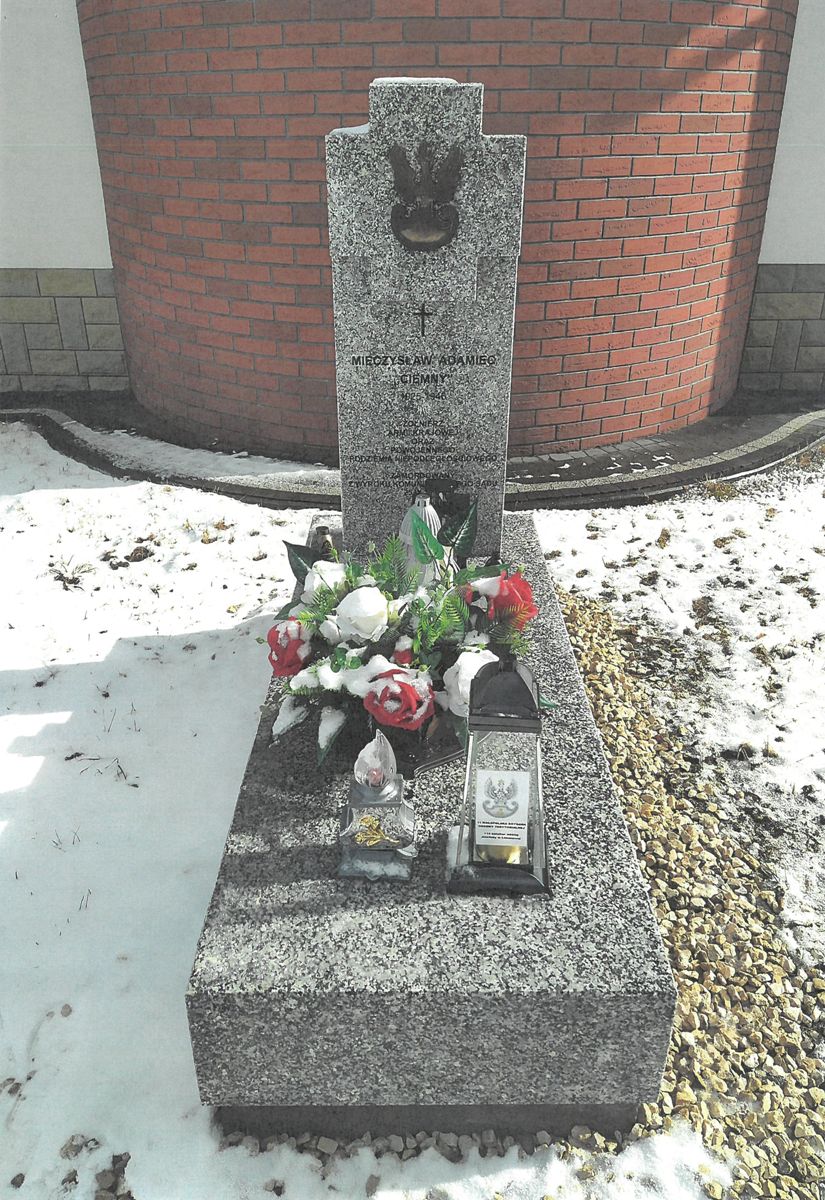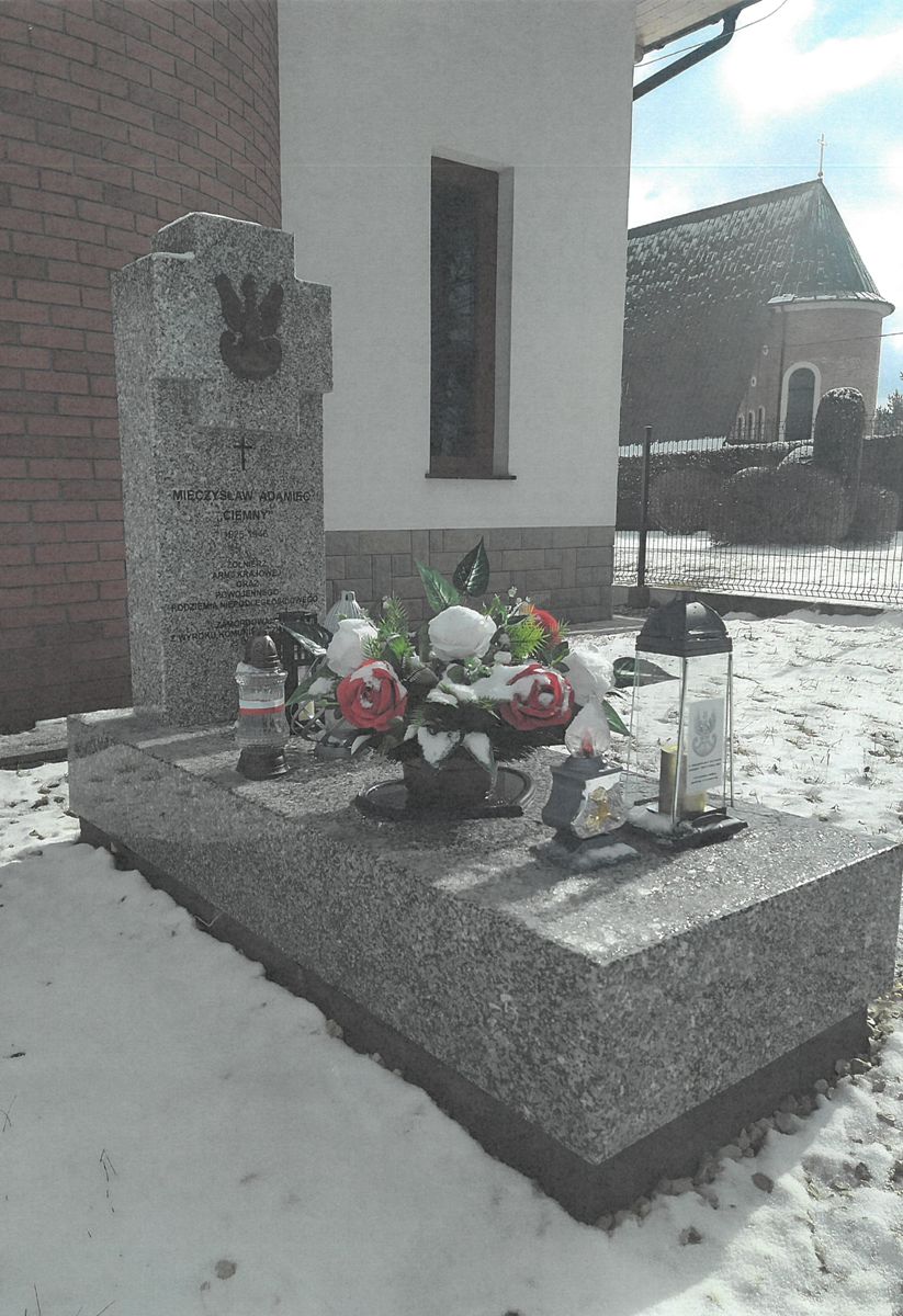 Grób ziemny, oznaczony drewnianym krzyżem z pasyjką i tabliczką z napisem „چP/ Mieczysław/ Adamiec/ „Ciemny"/ 1925-1946/ żołnierz Armii Krajowej/ oraz/ powojennego podziemia niepodległościowego/ zamordowany przez komunistów".