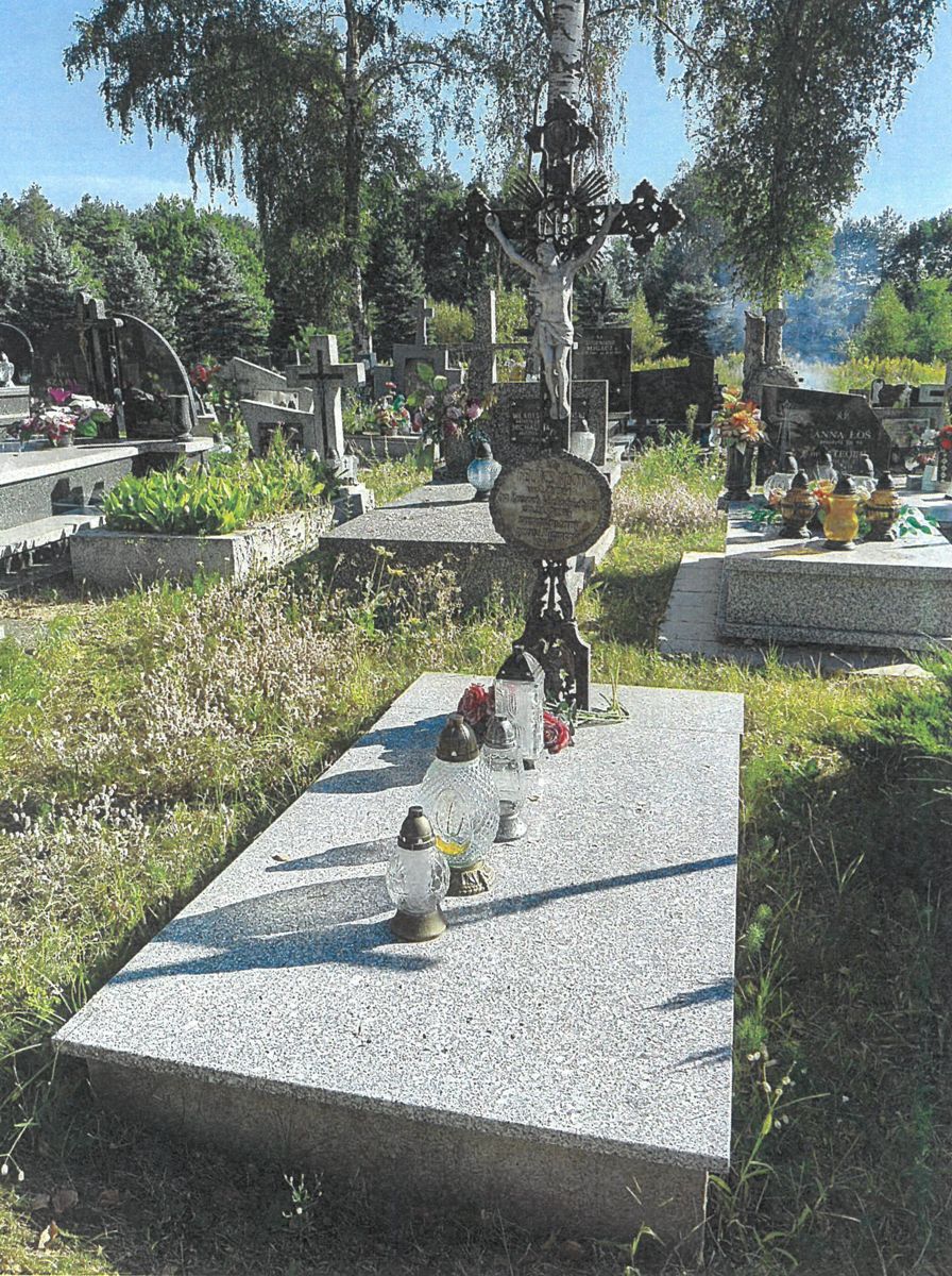 Grób ziemny, nakryty płytą z jasnoszarego granitu, u wezgłowia żeliwny ażurowy krzyż z promienistą glorią i pasyjką. Na dolnej belce umieszczona jest owalna tabliczka z brzegami zdobionymi motywem roślinnym oraz wypukłym napisem:
