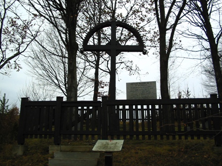 Niskim krzyżem, wykonanym z rur żelaznych krzyżem łacińskim z figurą Chrystusa oznaczony jest grób zbiorowy 3 żołnierzy niemieckich poległych w II wojnie światowej z tablicą z napisem: