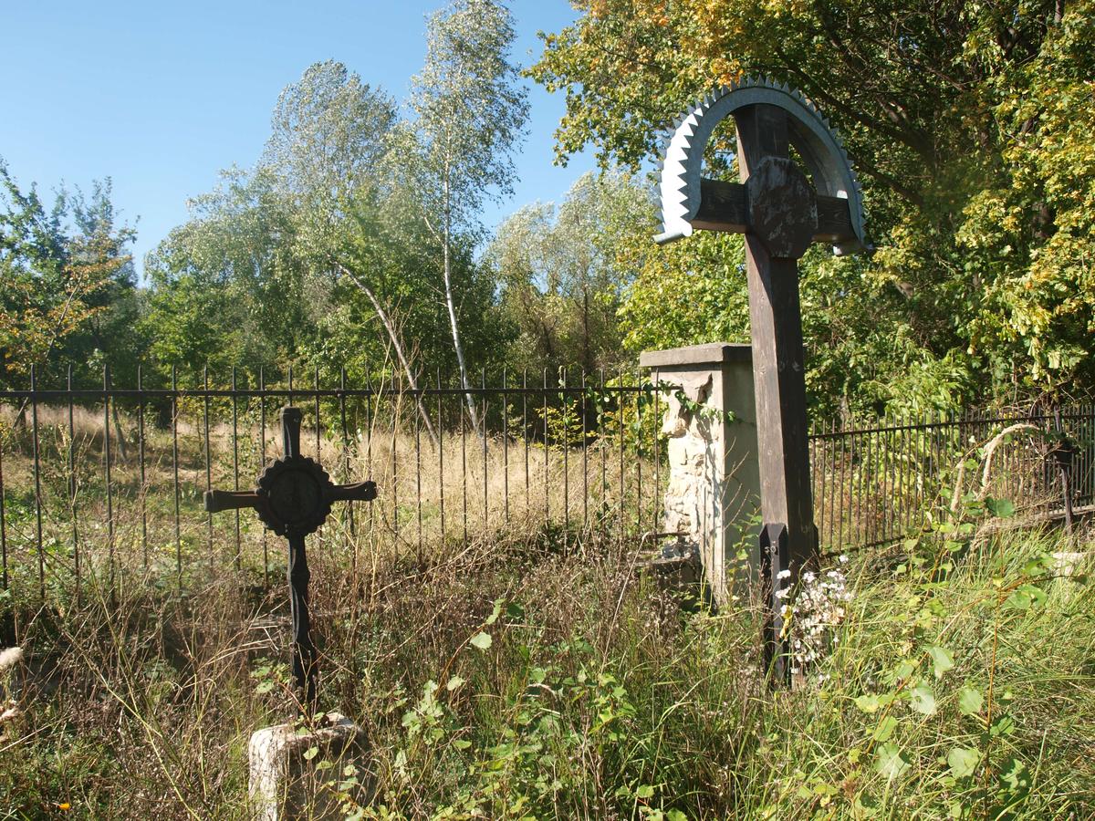 Na cmentarzu znajdują się nagrobki w formie osadzonych na betonowych cokołach: