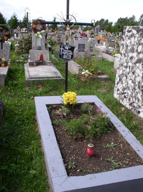 Mogiła ziemna z betonowym obramowaniem. U wezgłowia znajduje się krzyż z metalowych rur z figurą Chrystusa i tabliczką z namalowaną głową Chrystusa oraz napisem: „Ś.P./STANISŁAW HATŁAS/ ŻYŁ 23 LATA/ ZGINĄŁ Z RĄK HITLEROWCÓW/ SPOCZYWAJ W POKOJU”.