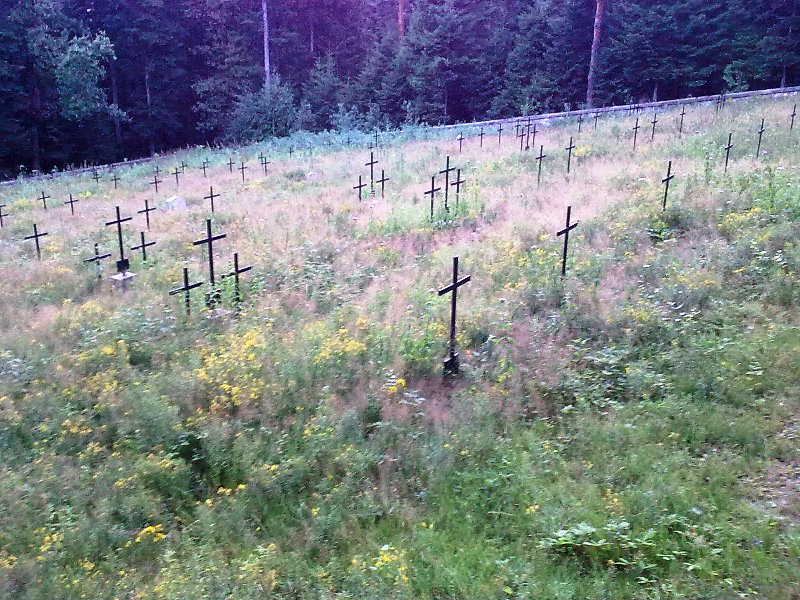 W 3 grobach pojedynczych i 5 zbiorowych pochowano tu 206 żołnierzy armii rosyjskiej poległych 5 maja 1915 r.