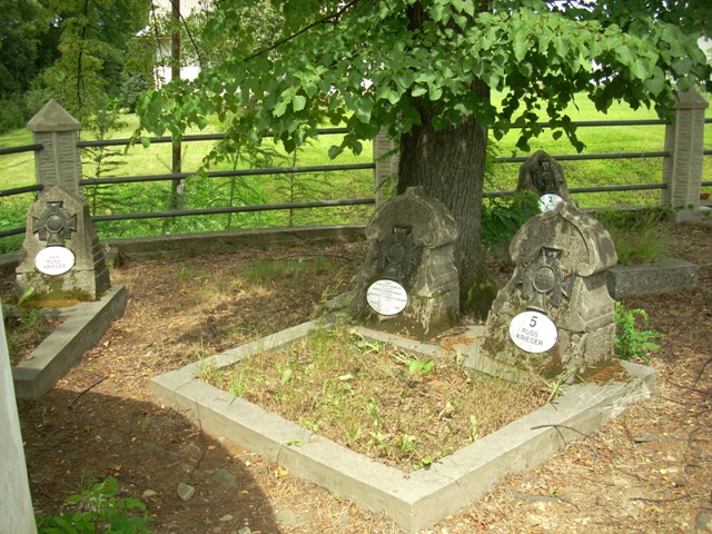 W 6 grobach zbiorowych i 5 pojedynczych pochowano 22 żołnierzy z armii austro-węgierskiej i 8 z armii rosyjskiej. Zidentyfikowano 12.