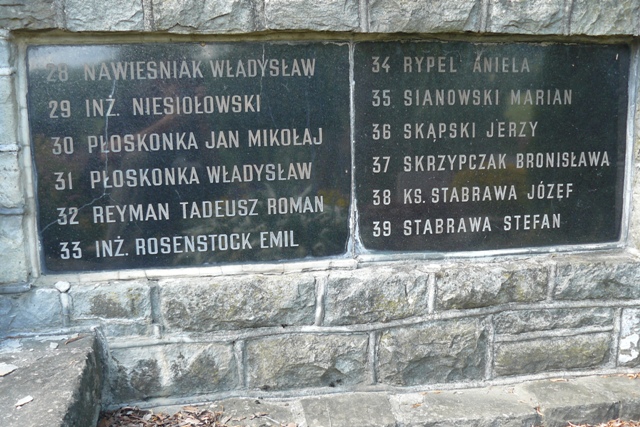 W licu muru, stanowiącego ogrodzenie mogiły od strony północno-zachodniej, umieszczone są tablice z 57 nazwiskami ofiar terroru hitlerowskiego i stalinowskiego.