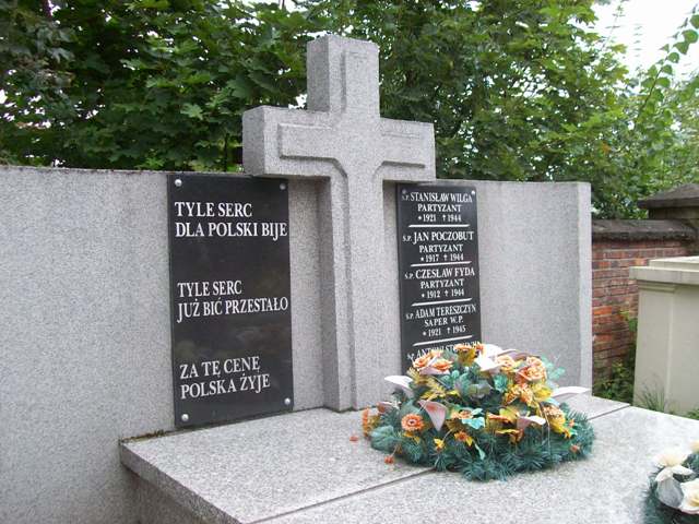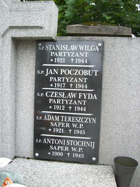 Pochowano tu trzech partyzantów poległych w 1944 r. i dwóch saperów Wojska Polskiego poległych w 1945 r.
