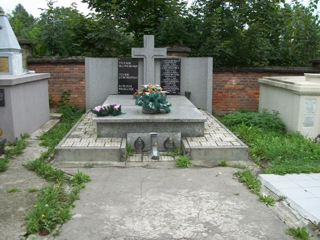 Mogiła obramowana i nakryta trzema granitowymi płytami. U wezgłowia mogiły znajduje się granitowy krzyż i ściana pomnikowa z dwiema tablicami z nazwiskami pochowanych i napisem: „TYLE SERC/ DLA POLSKI BIJE/ TYLE SERC/ JUŻ BIĆ PRZESTAŁO/ ZA TĘ CENĘ/ POLSKA ŻYJE”.