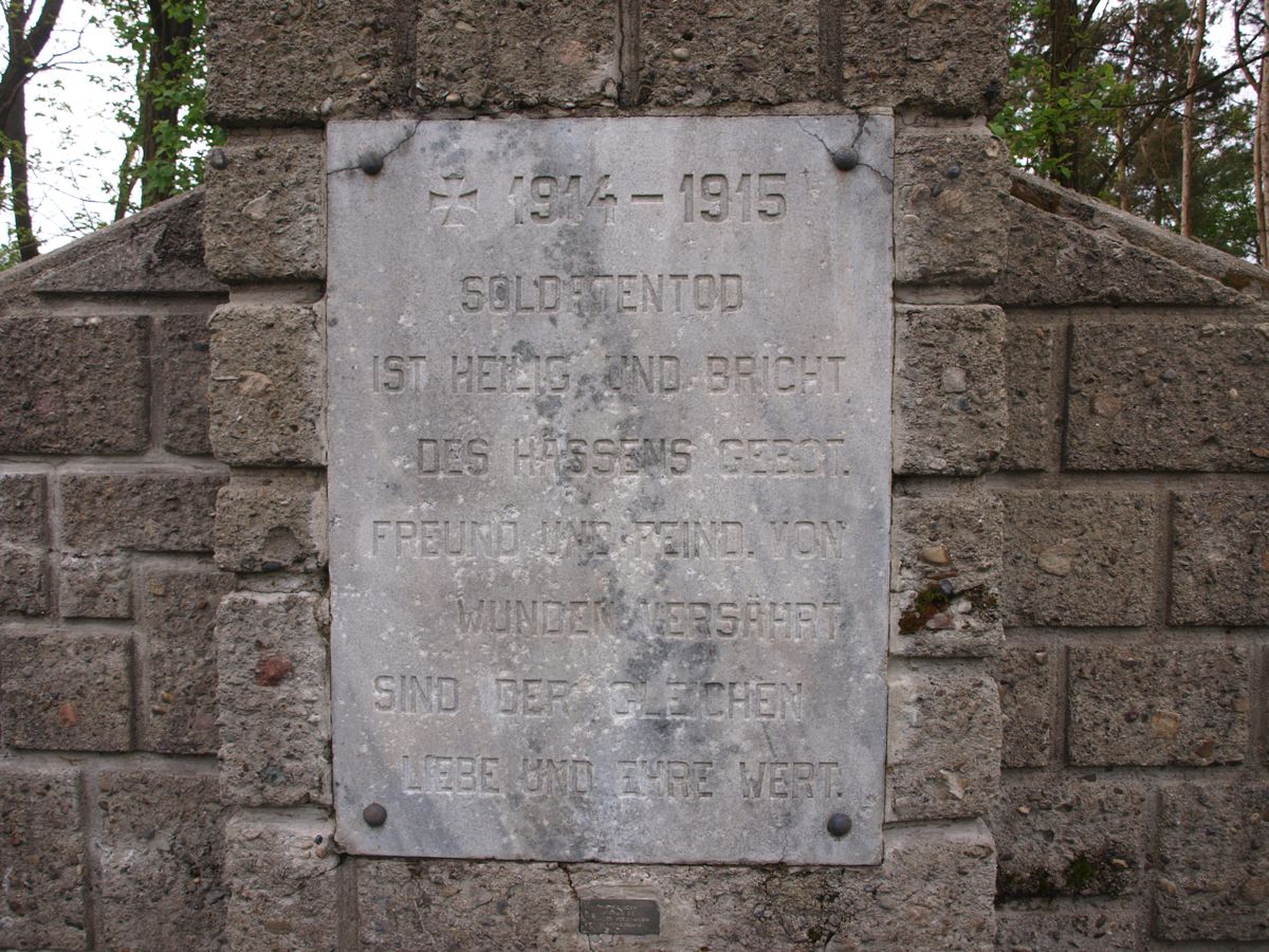Cmentarz założony jest na planie prostokąta i otoczony ogrodzeniem ze słupów, wykonanych z betonowych bloczków, połączonych trzema metalowymi poręczami. Znajdujące się od strony zachodniej wejście, poprzedzone jest betonowymi schodami i zamykane jednoskrzydłową furtką z metalowych prętów. Główny element cmentarza stanowi betonowy krzyż łaciński, umieszczony na podwyższonym odcinku muru. Poniżej krzyża na murze umieszczona jest tablica z napisem w języku niemieckim: „+ 1914 – 1915/ SOLDATENTOD/ IST HEILIG UND BRICHT/ DES HASSENS GEBOT./ FREUND UND FEIND. VON/ WUNDEN VERSÄHRT/ SIND DER GLEICHEN/ LIEBE UND EHRE WERT”.