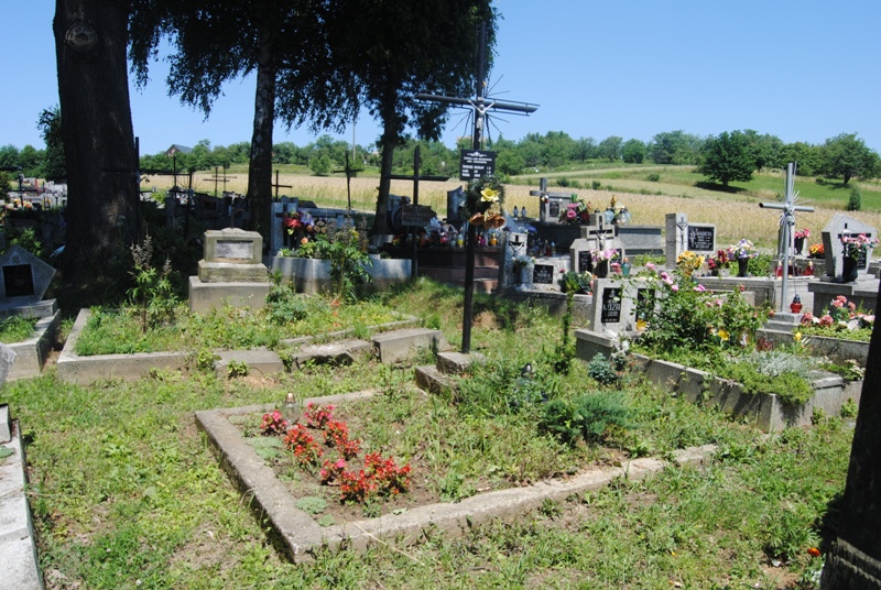 Mogiła ziemna w betonowym obramowaniu, u wezgłowia na betonowej podstawie krzyż z metalowych rur z pasyjką i tabliczką z napisem: „ZGINĘLI z RĄK HITLEROWCÓW/ JAKO BOHATEROWIE/ ŚWIERCZEK BOLESŁAW L. 20/ GAJDA JAN L. 32/ WRÓBEL JAKUB [...]”