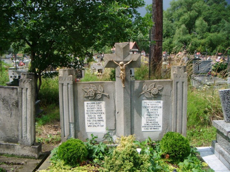 – „TU SPOCZYWAJĄ/ ŚW PAMIĘCI/ STACHEL WŁADYSŁAW UR. 2 VI 1900 R./ PŁAWECCY FRANCISZEK/ UR 10 VII 1913 R./ EDWARD/ UR 4 VII 1920 R/ ZGINĘLI ŚMIERCIĄ/ BOHATERSKĄ 26 XII 1944 R/ CZEŚĆ ICH PAMIECI”