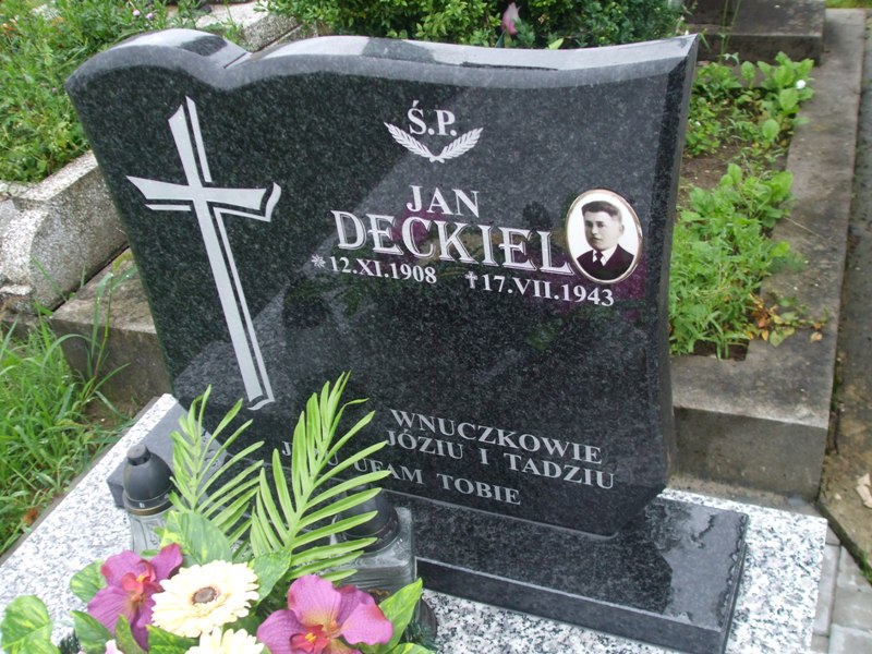 Jan Deckiel został zastrzelony w lipcu 1943 r. przez funkcjonariuszy Gestapo.