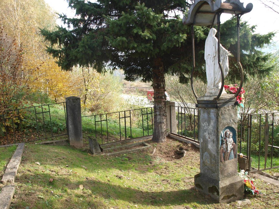Der kleine Friedhof wurde neben der historischen Kapelle aus dem Jahr 1887 auf dem Grundriss eines fast quadratförmigen Rechtecks angelegt. Die Umzäunung besteht aus Betonpfosten, die mit Metallstäben mit lateinischen Kreuzmotiven verbunden sind. Der Eingang, dem eine Treppe vorgelagert ist, befindet sich auf der Südseite. Er wird mit einem einflügeligen Metalltor aus gekreuzten Stäben geschlossen. Das Hauptelement des Friedhofs ist eine Kapelle mit der Marienstatue, die mit einem von Metallstäben getragenen Blechdach bedeckt ist. Auf dem Friedhof befinden sich Grabsteine in Form von Betonstelen mit kleinen, gusseisernen, zweiarmigen Kreuzen oder gusseisernen lateinischen Kreuzen mit einem runden Schild am Schnittpunkt der Kreuzarme.