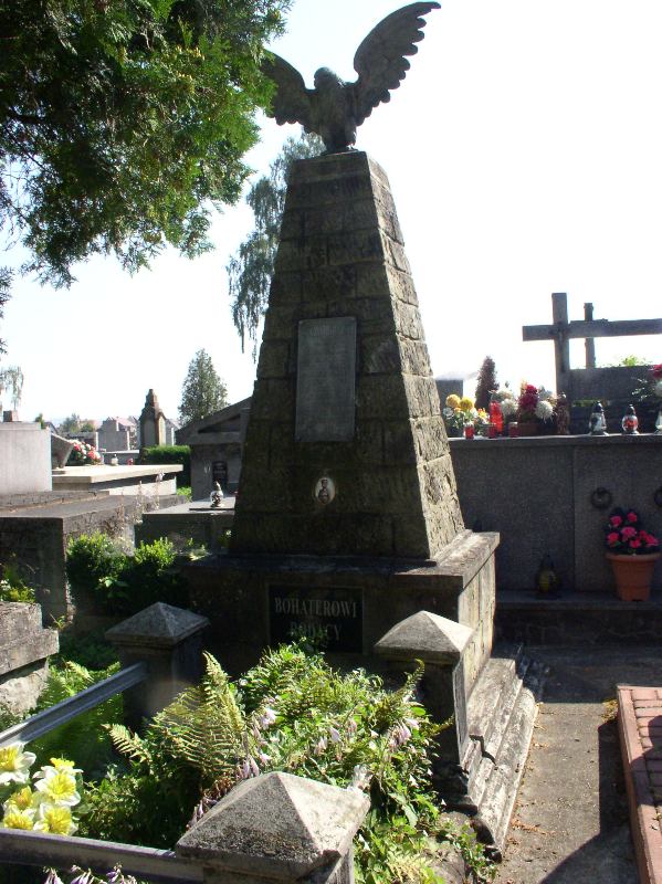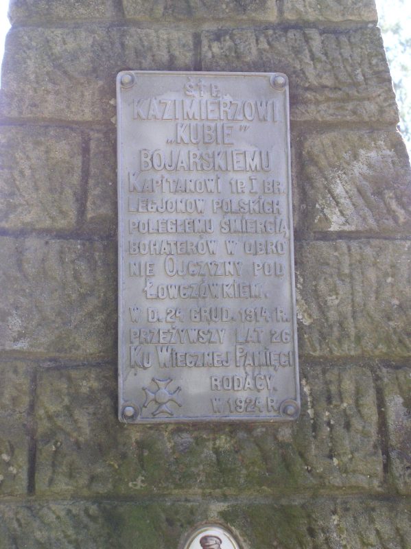 Pochowano tu Kazimierza „Kubę” Bojarskiego poległego 24 grudnia 1914 r. w bitwie pod Łowczówkiem. Pomnik został ustawiony w 1924 r.