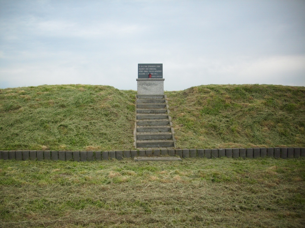 Pochowano tu 41 żołnierzy armii niemieckich, którzy zginęli w wyniku katastrofy kolejowej 3 listopada 1914 r. w okresie działań wojennych. Pierwotnie cmentarz był ogrodzony niskim kamiennym murkiem, a na kopcu znajdował się duży kamienny blok z napisem w języku niemieckim i nazwiskami pochowanych. Po jego obu stronach umieszczone były mniejsze płyty z napisami w języku niemieckim.