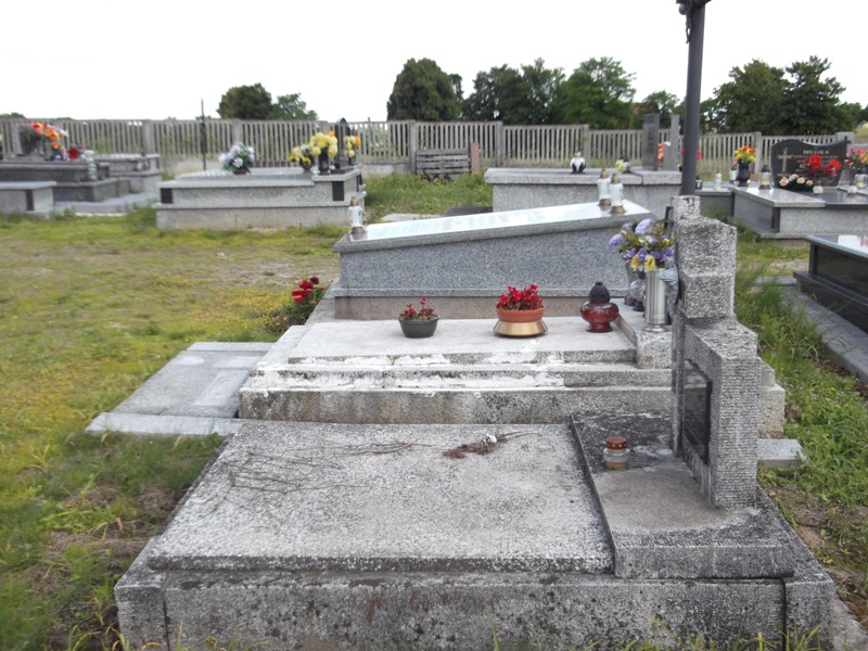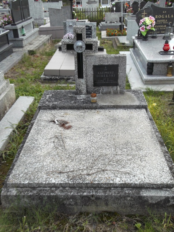 Na mogile znajduje się lastrykowy nagrobek z lastrykowym krzyżem i stelą u wezgłowia. Na steli umieszczona jest czarna tablica z napisem: „KAZIMIERZ OTRĘBSKI/ LAT 21/ ZGINĄŁ 1 III 1943/ Z RĄK HITLEROWSKIEGO OKUPANTA”. Na skrzyżowaniu ramion krzyża znajduje się metalowy medalion z głową Chrystusa.