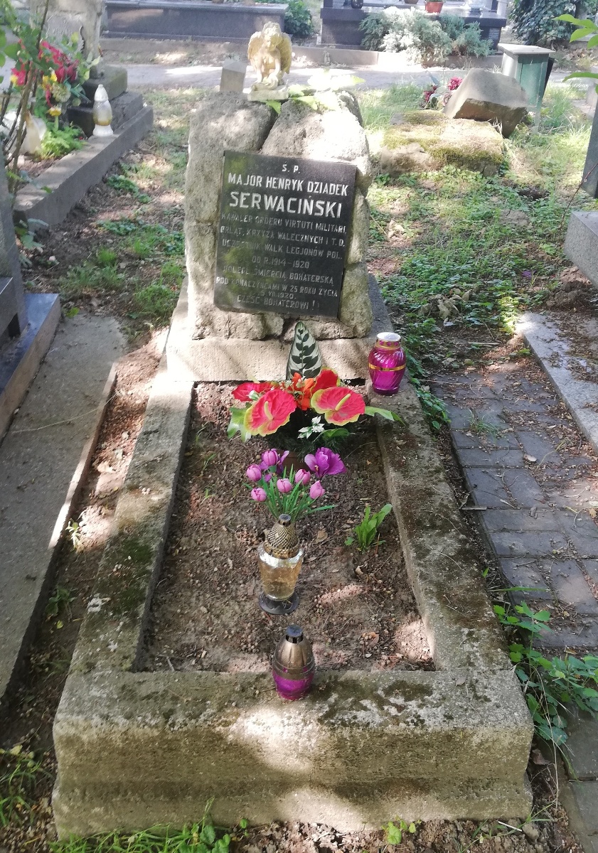 MOGIŁA MJR. HENRYKA DZIADKA-SERWACIŃSKIEGO (SERWACZYŃSKIEGO) Z 1920 R. (33-2-69) NA CMENTARZU RAKOWICKIM W KRAKOWIE