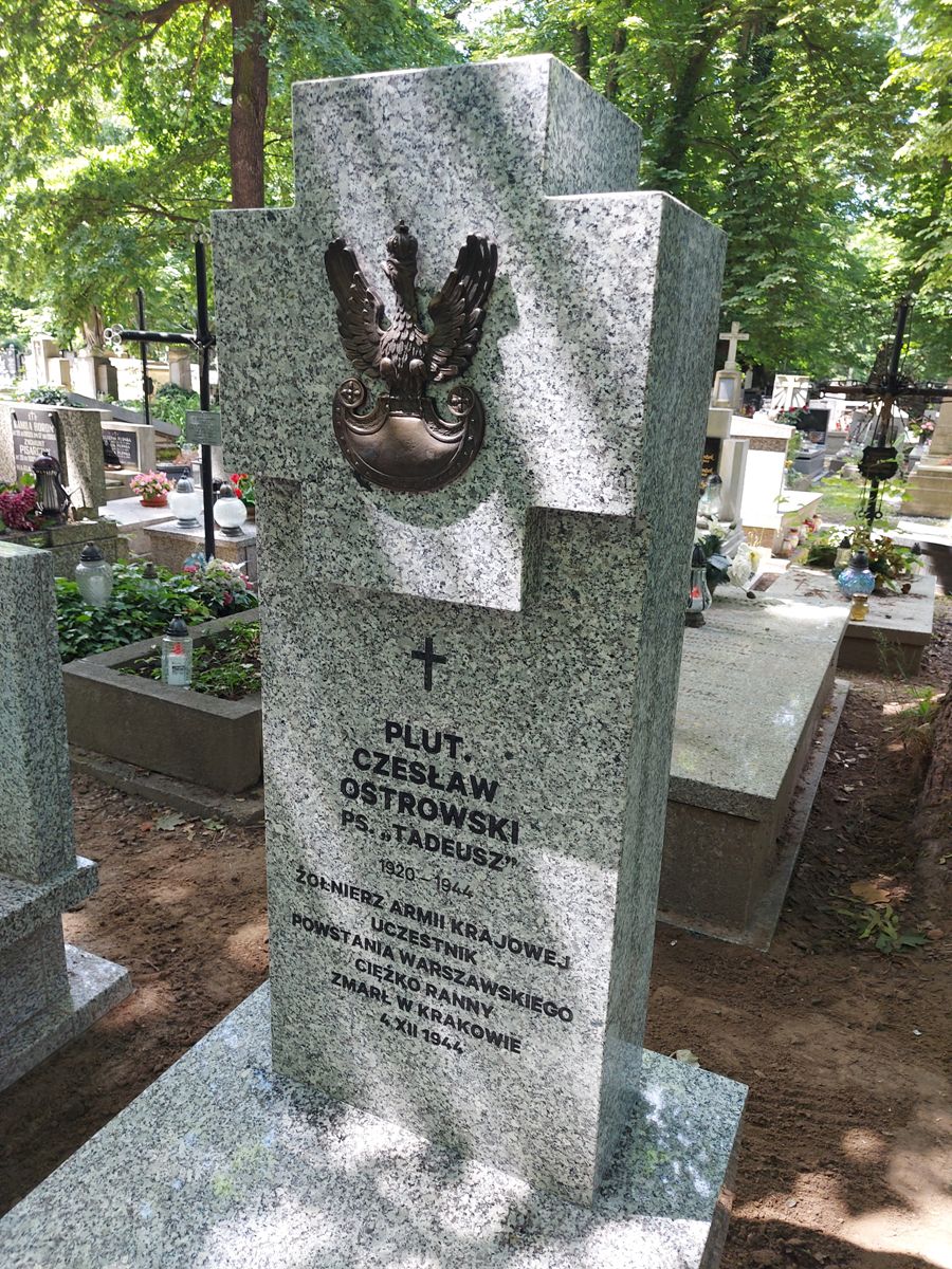 MOGIŁA CZESŁAWA OSTROWSKIEGO, UCZESTNIKA POWSTANIA WARSZAWSKIEGO Z 1944 R. NA CMENTARZU RAKOWICKIM W KRAKOWIE (KW. X, RZĄD 3, GRÓB NR 15)