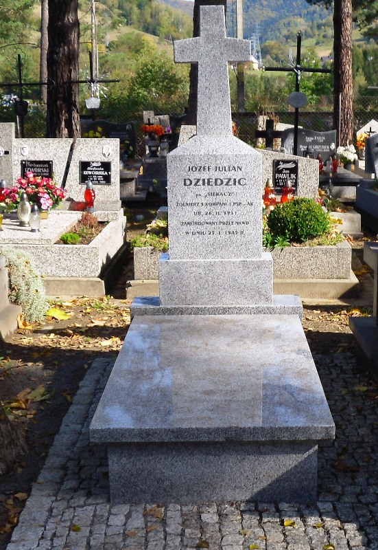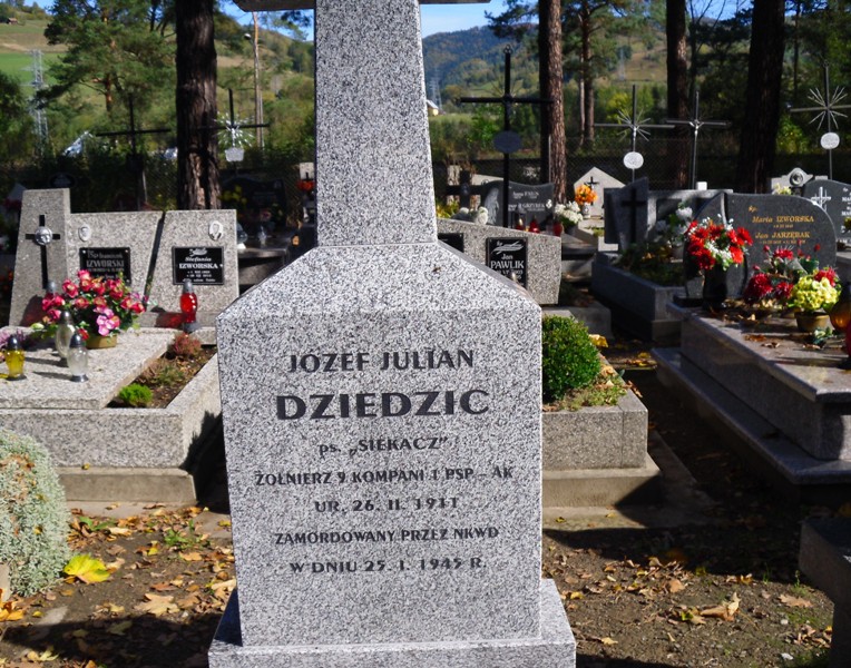 Józef Julian Dziedzic ps. „Siekacz” z zawodu dentysta, w czasie okupacji niemieckiej współpracował z oddziałem Armii Krajowej dowodzonym przez Juliana Zubka ps. „Tatar”. W jego domu w Kosarzyskach odbywały się spotkania między przedstawicielami Armii Krajowej i partyzantki sowieckiej na terenie sądecczyzny. 21 stycznia 1945 r. został postrzelony przez NKWD podczas próby ucieczki z przesłuchania w miejscowości Rytro. Kiedy próbował przedostać się na drugi brzeg Popradu, załamał się pod nim lód. Zwłoki odnaleziono kilka dni później w okolicach Starego Sącza i pochowano na cmentarzu w Piwnicznej.