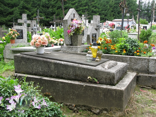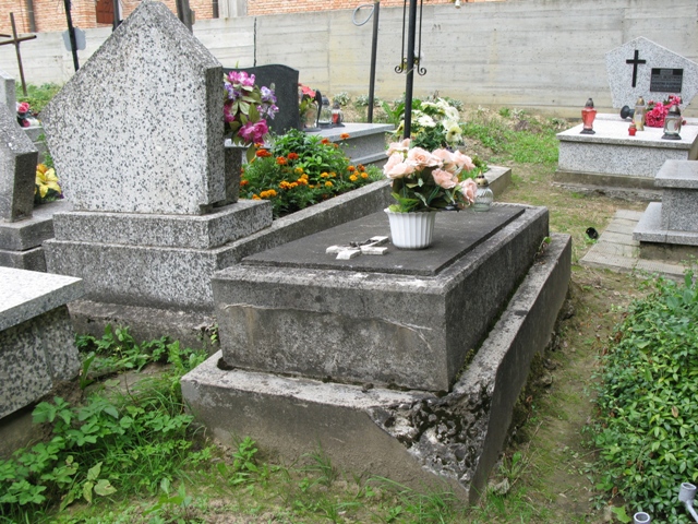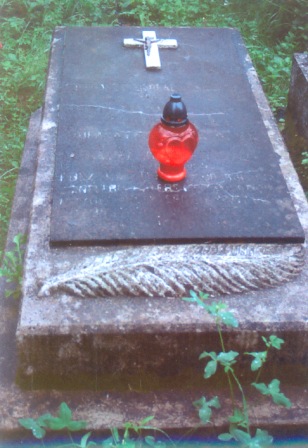 Na mogile znajduje się dwustopniowy grobowiec z płaskorzeźbą liścia palmowego oraz płytą z krucyfiksem i nieczytelnym napisem memoratywnym.