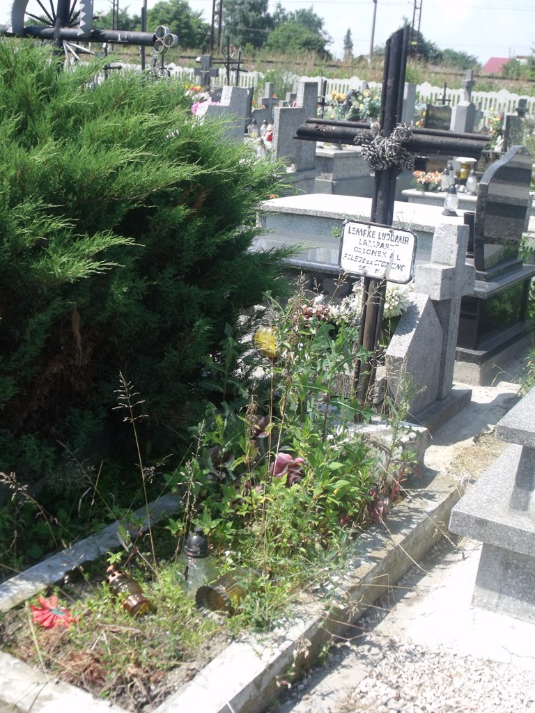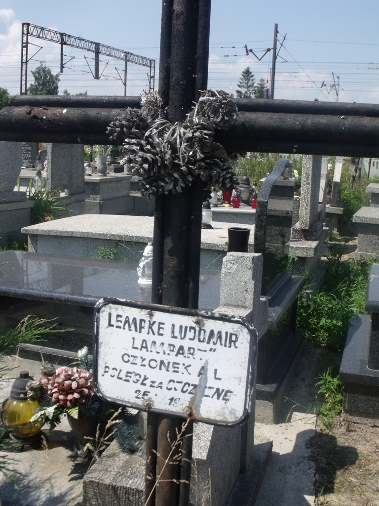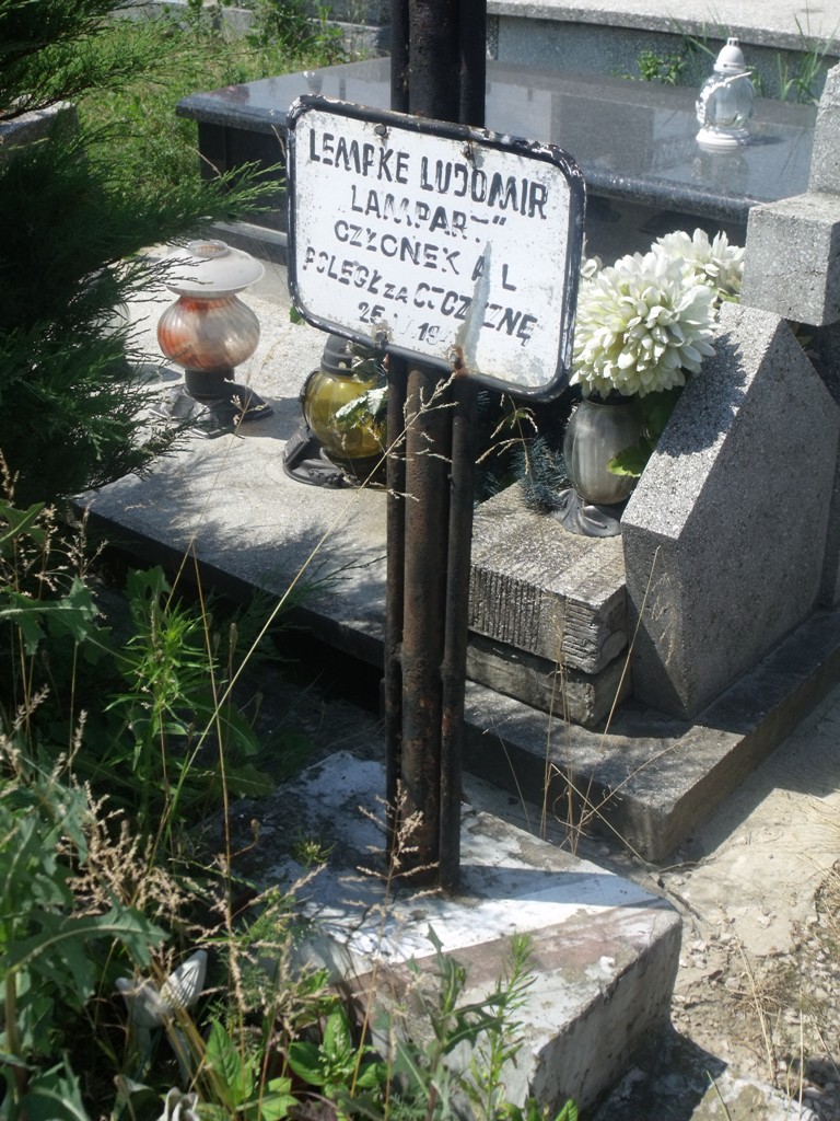 Mogiła ziemna w betnowym obramowaniu, u wezgłowia krzyż z metalowych rur z prostokątną tabliczką z napisem: „LEMPKE LUDOMIR/ LAMPART/ CZŁONEK AL/ POLEGŁ ZA OJCZYZNĘ/ 25 IV 1944”.