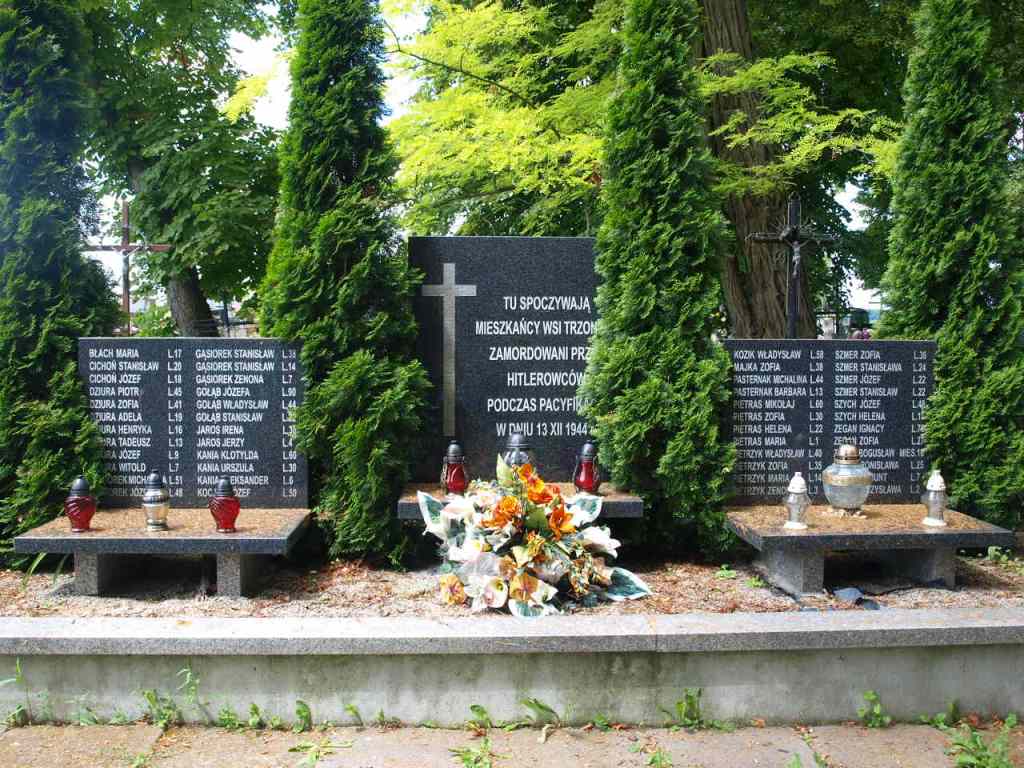 Ogółem na cmentarzu spoczęły szczątki 48 ofiar pacyfikacji wsi Trzonów, przeprowadzonej przez okupanta niemieckiego 13 grudnia 1944 r. Część została pochowana mogile zbiorowej, część w grobach indywidualnych. Wykaz pochowanych zawiera nazwiska wymienione w „Arkuszu grobownictwa wojennego” z 1945 r. przechowywanym w Archiwum Narodowym w Krakowie.