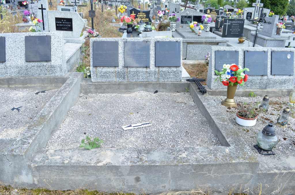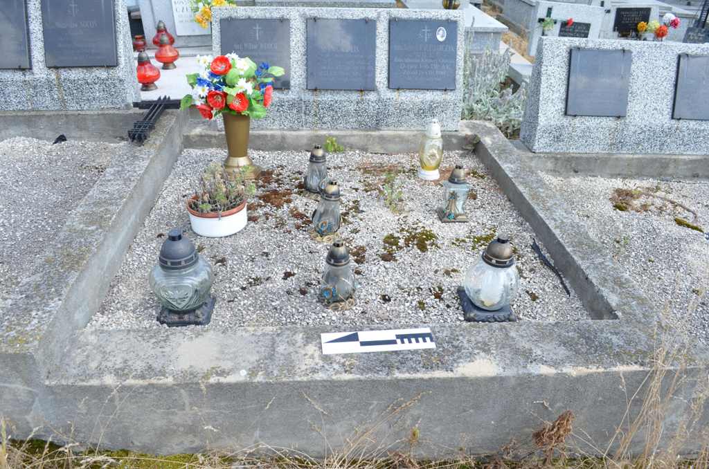 – obramowanie nr 5: „Ś.†P./ Strz. Jan CHRZAN/ „KORNECIK”/ Żołn. Iplut. „Bartosz” 1 komp. „Batory”/ Baonu „Suszarnia”/ Zamordowany w 1945 przez UB/ Pochowany na tut. Cmentarzu”, „Ś.†P./ Plut. Jan REJDAK/ „POMOSTOWICZ”/ Żołn. Iplut. „Bartosz” 1 komp. „Batory”/ Baonu „Suszarnia”/ Zginął 11.XI.1944 w Święcicach/ Pochowany na tut. Cmentarzu”;