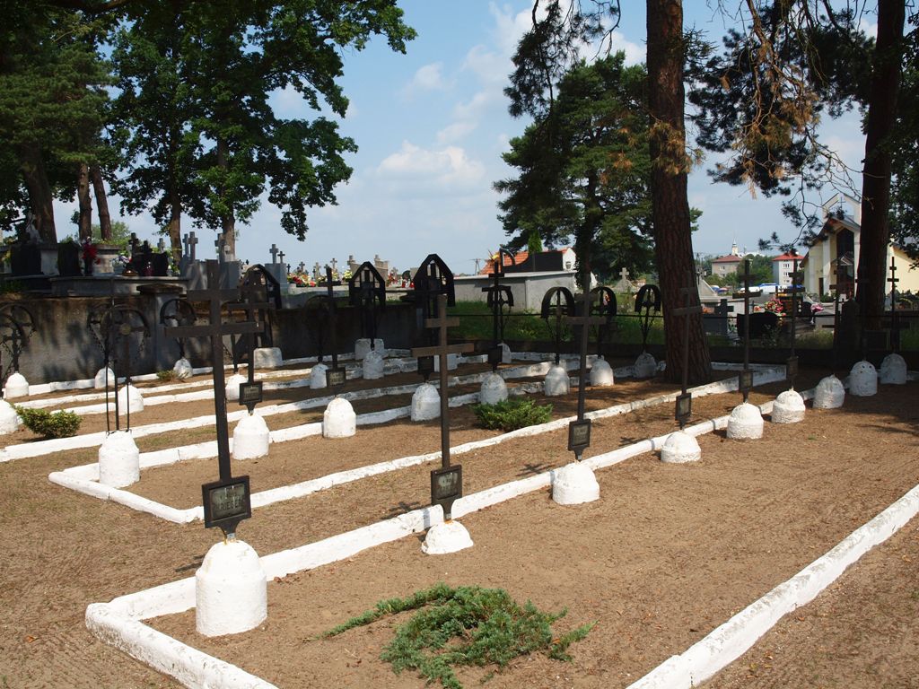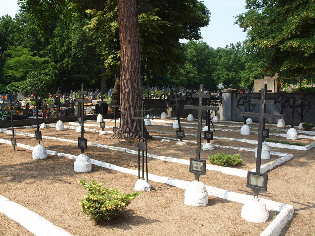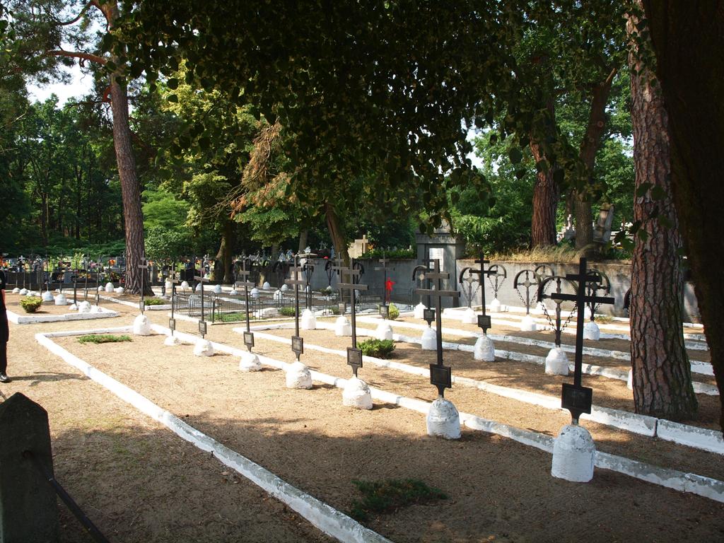 Groby z I wojny światowej rozmieszczone są w ujętych w krawężniki rzędach, prostopadłych do alejki głównej mogiły żołnierzy sowieckich. Na grobach znajdują się nagrobki w formie: