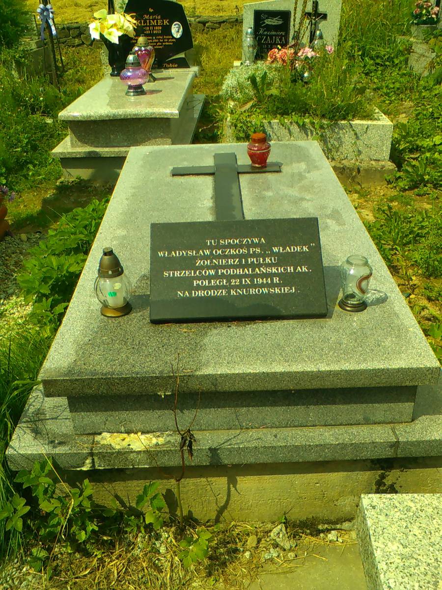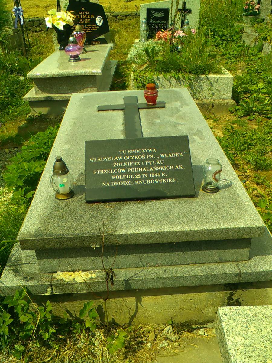Władysław Oczkoś ps. „Władek" należał do oddziału „Krakusów, który latem 1944 r. trafił na Podhale. Zginął 22 września 1944 r. Jadąc samochodem, urządził krótki postój tuż przed Knurowem, gdzie natrafił na auto wiozące kilku żołnierzy Luftwaffe z Czorsztyna, przez których został zastrzelony z broni maszynowej. Ciało odnalazł patrol partyzancki. Pochowano je nocą z 22 na 23 września 1944 r. w obecności ks. Józefa Śledzia na cmentarzu parafialnym Ochotnicy Górnej.