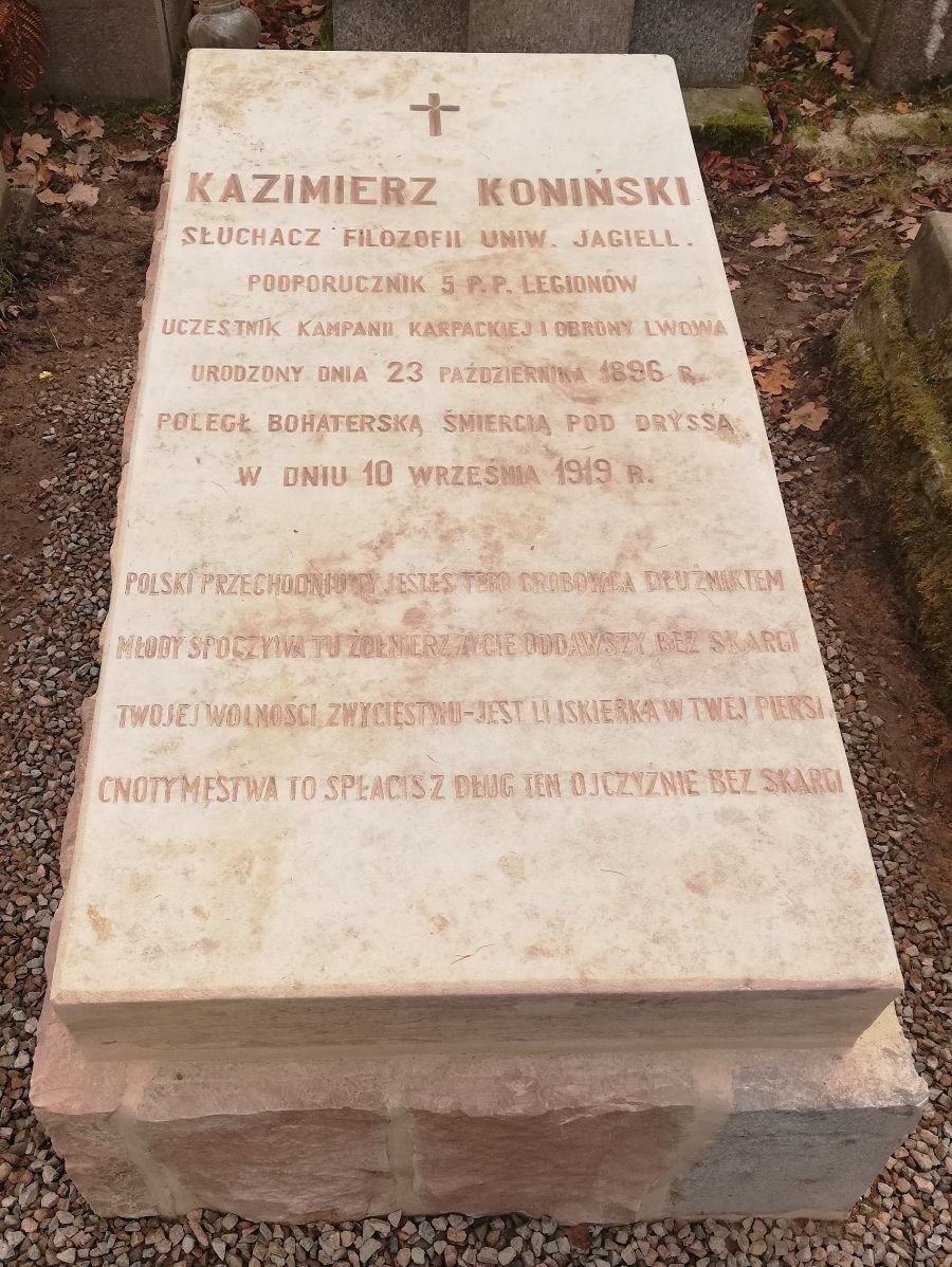MOGIŁA PODPORUCZNIKA WOJSKA POLSKIEGO KAZIMIERZA KONIŃSKIEGO Z 1919 R. NA CMENTARZU RAKOWICKIM W KRAKOWIE (KW. XVIII RZ. ZACH. GRÓB NR 42 OD PRAWEJ)
