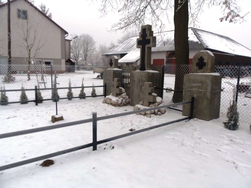 W czterech mogiłach zbiorowych i jednej pojedynczej pochowano 69 żołnierzy z 42 pułku piechoty armii rosyjskiej. W 2018 r. został przeprowadzony remont cmentarza.