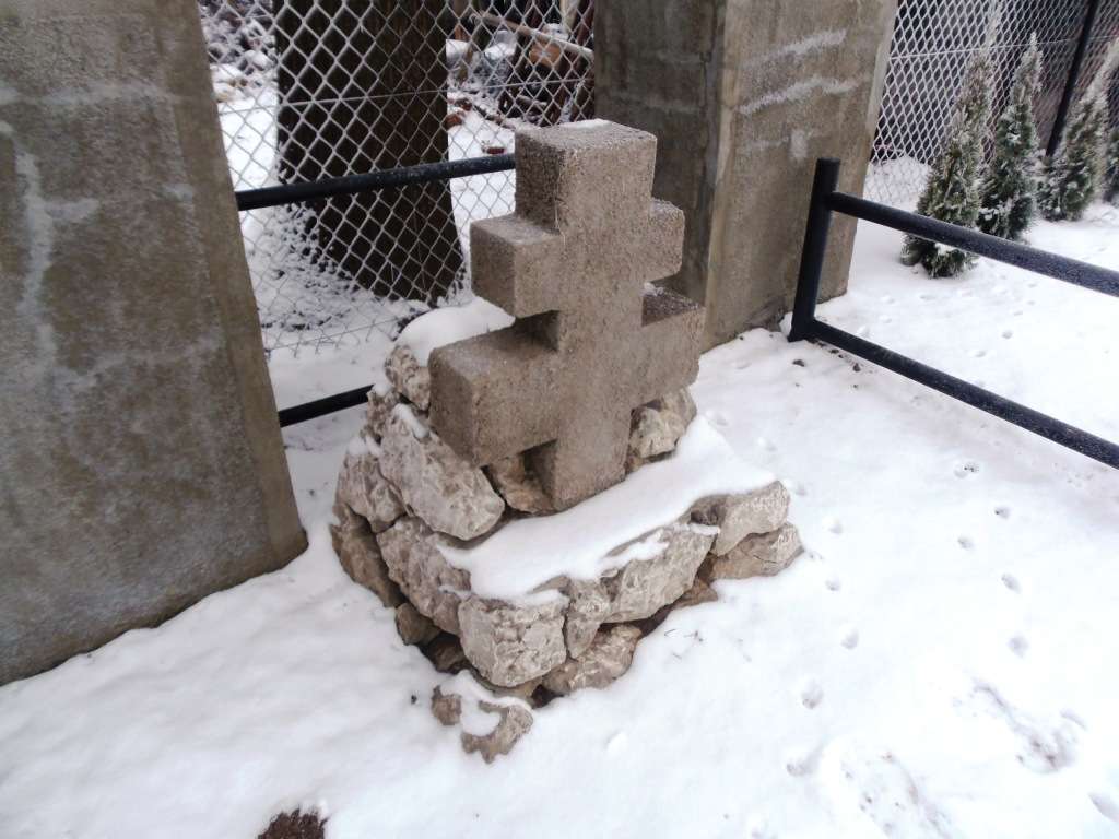 Przed pomnikiem znajdują się dwa mniejsze betonowe krzyże lotaryńskie, osadzone w kamiennych kopcach.