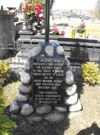 Pochowano tu dwóch partyzantów z batalionu „Harnaś” Armii Krajowej, poległych w latach 1944–1945. W 2022 r. wykonano kompleksowy remont mogiły.