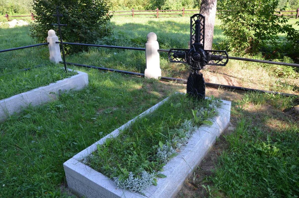 – ścięta pulpitowo betonowa stela, zwieńczona małym, metalowym krzyżem łacińskim.