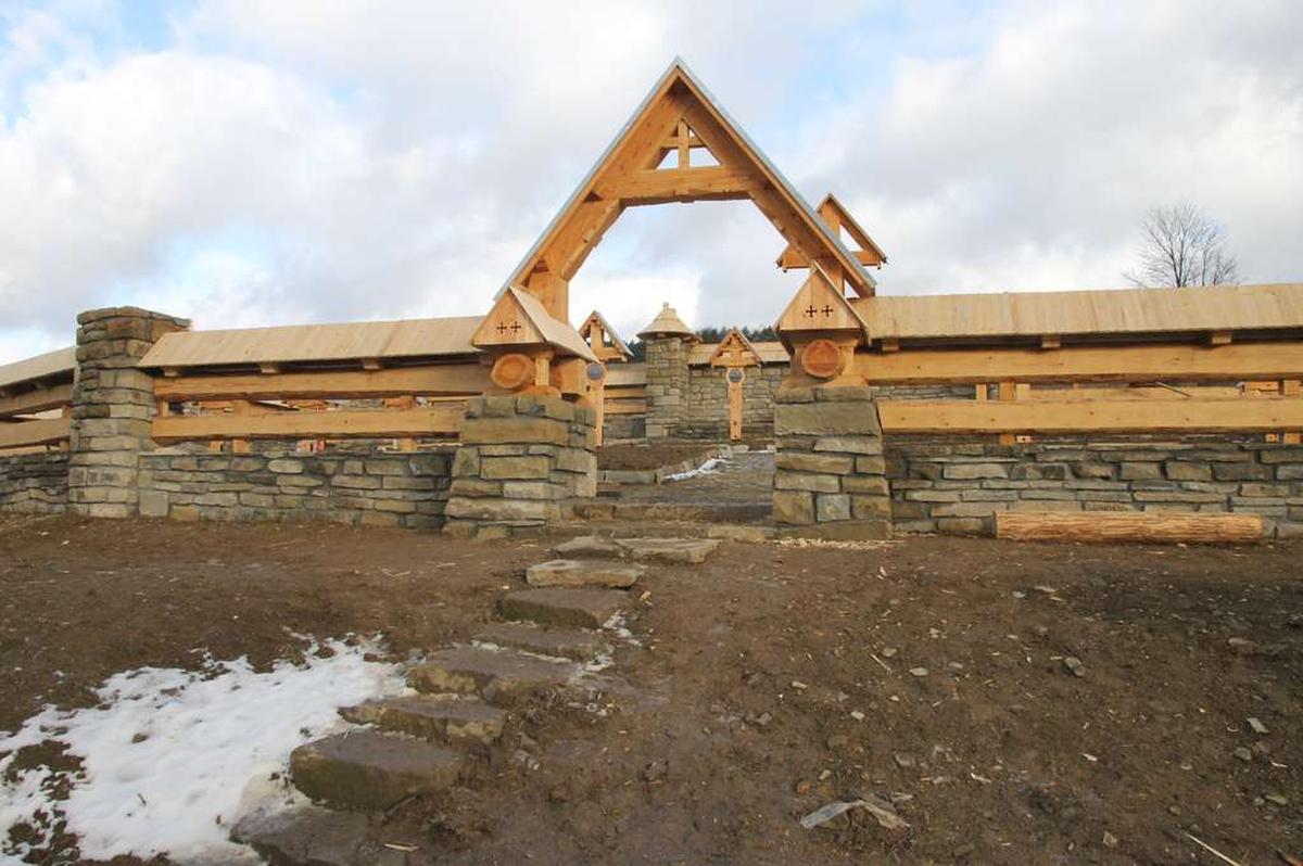Głównym elementem cmentarza stanowi wysoki drewniany krzyż z belek z dwuspadowym zadaszeniem, usytuowany przed krótkim odcinkiem kamiennego muru.