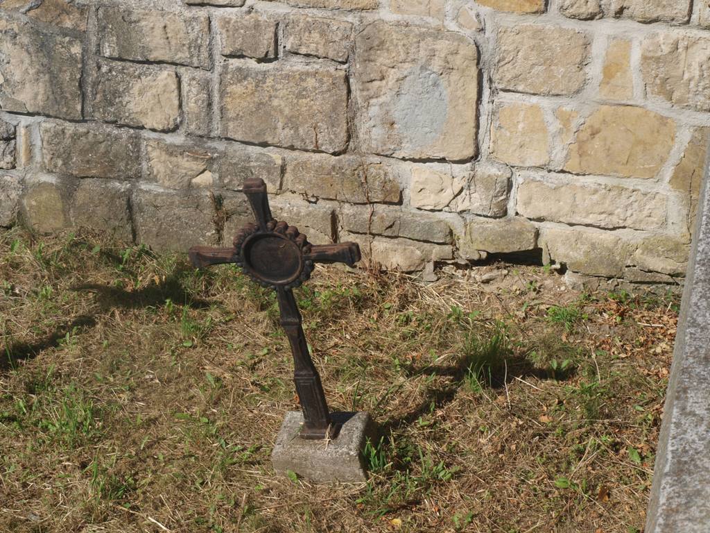 Cmentarz założony jest na planie litery L i otoczony kamiennym murem z betonową nakrywą. Brama wejściowa w formie półkoliście sklepionej arkady zwieńczonej kutym krzyżem znajduje się od strony południowo-wschodniej. Wejście zamykane jest jednoskrzydłową furtką z metalowych prętów. Głównym elementem cmentarza jest drewniany krzyż łaciński nakryty półkolistym zadaszeniem, umieszczony w podwyższonej części zachodniego ogrodzenia. Na cmentarzu znajdują się nagrobki w formie osadzonych na betonowych cokołach żeliwnych krzyży łacińskich z tarczą na skrzyżowaniu ramion (14 szt.).