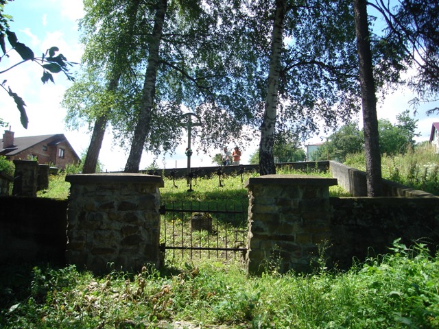 Cmentarz założony jest na planie zbliżonym do prostokąta i otoczony od strony południowej kamiennymi słupami z betonową nakrywą, połączonymi płotem z metalowych prętów, a z pozostałych stron betonowym murem. Wejście znajdujące się od strony wschodniej zamykane jest jednoskrzydłową furtką z metalowych prętów.